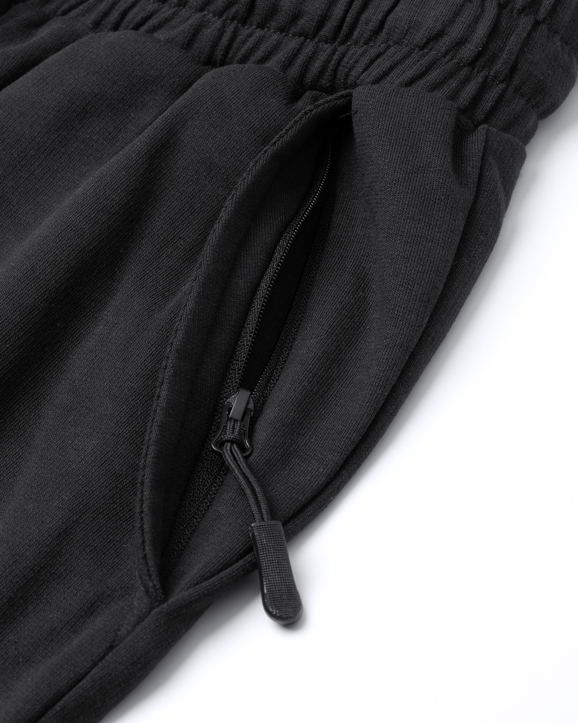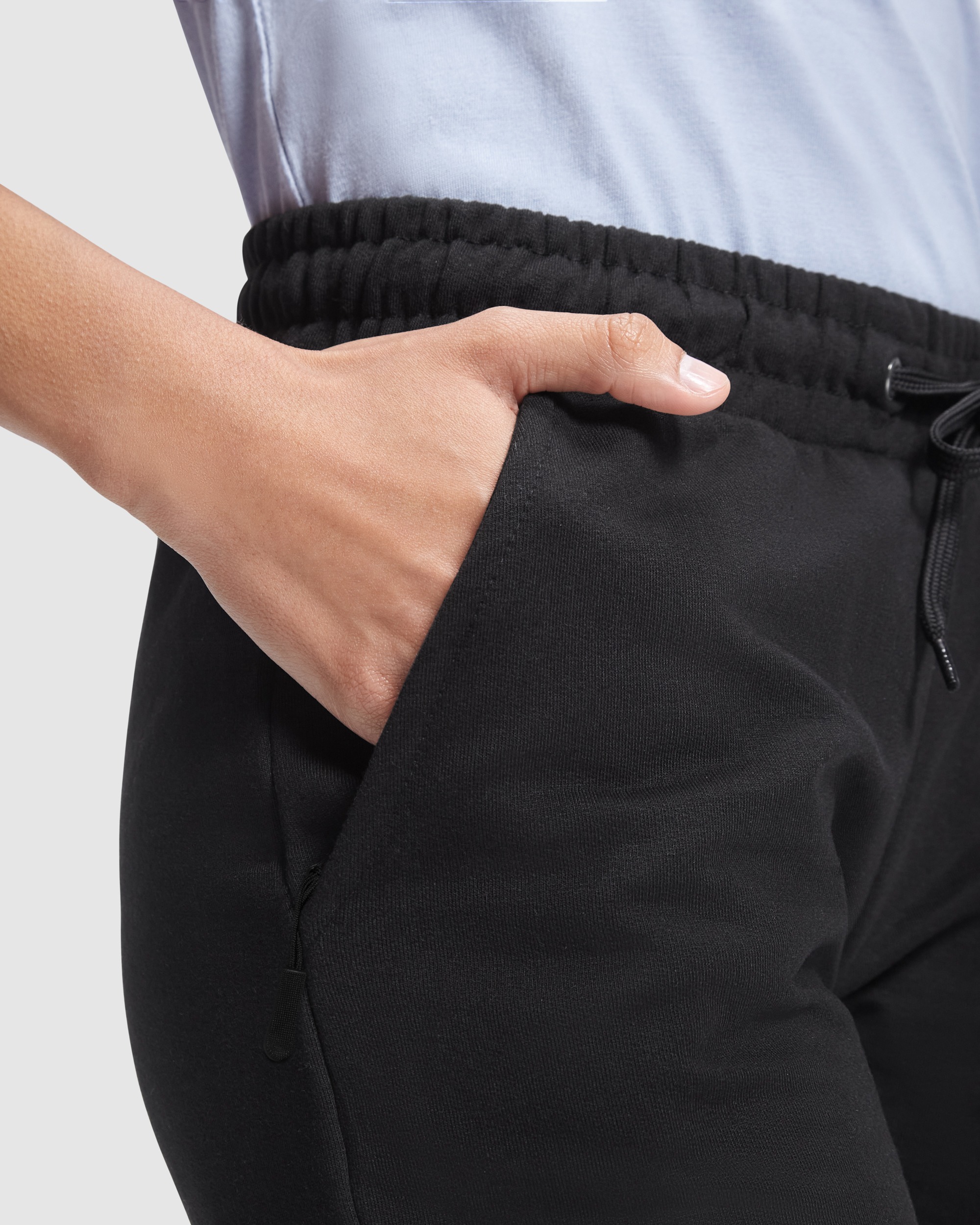 Pantaloni lunghi con taglio aderente e fasce elastiche alle caviglie. Ampio cordoncino regolabile in vita,