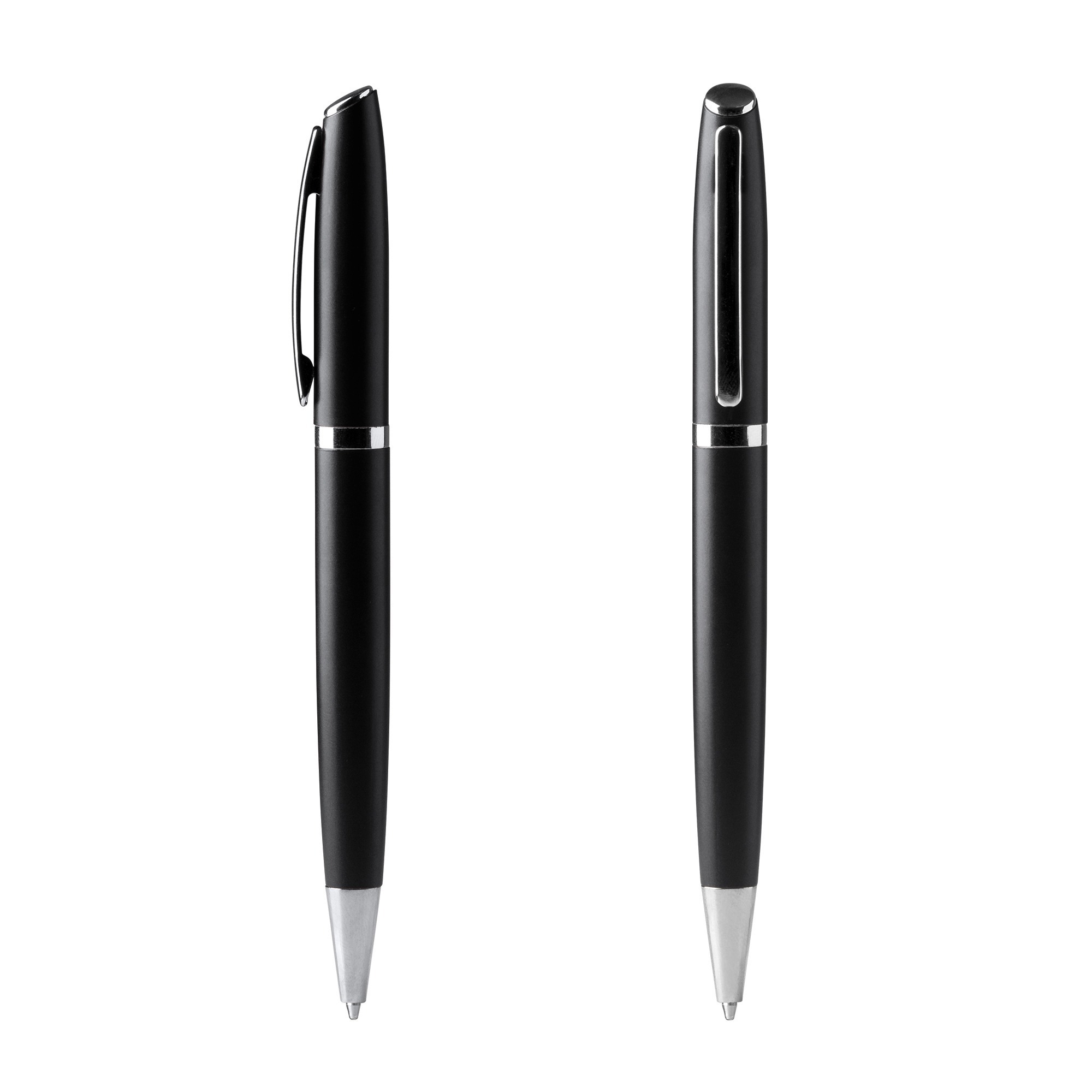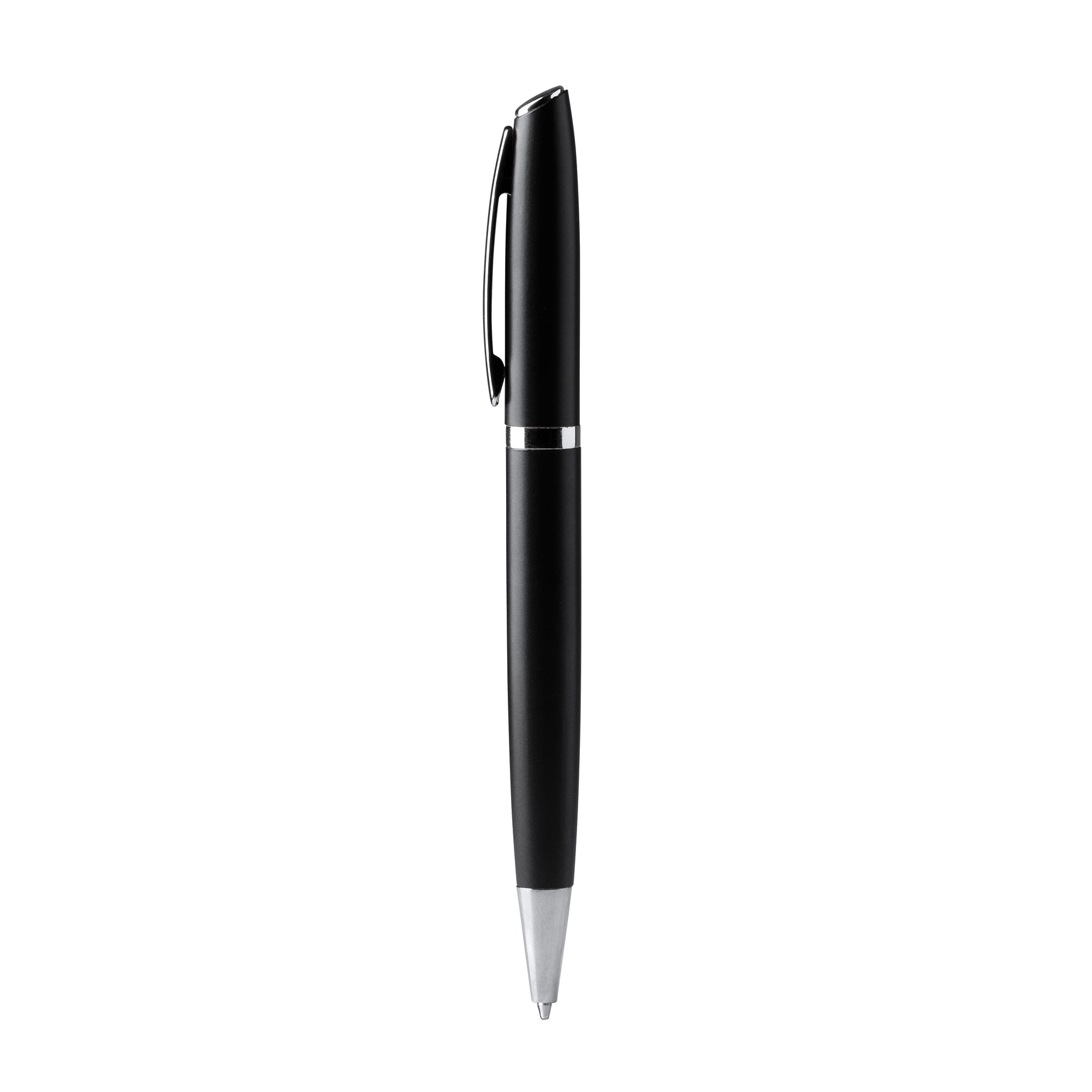 Elegante penna a sfera a rotazione con corpo in alluminio riciclato e dettagli in metallo. Ricarica jumbo a inchiostro blu.