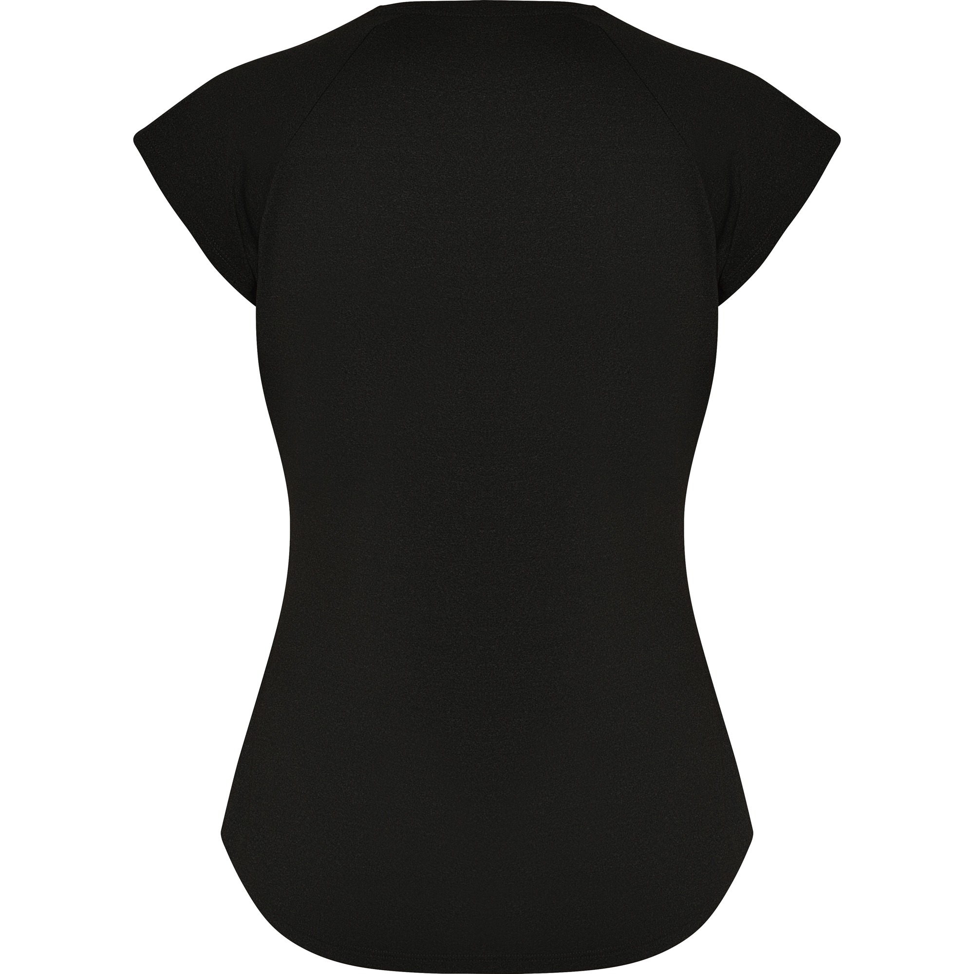 T-shirt tecnica multisport da donna maniche corte stile raglan. Collo a V. Tessuto poliestere tatto cotone. Taglio aderente.
