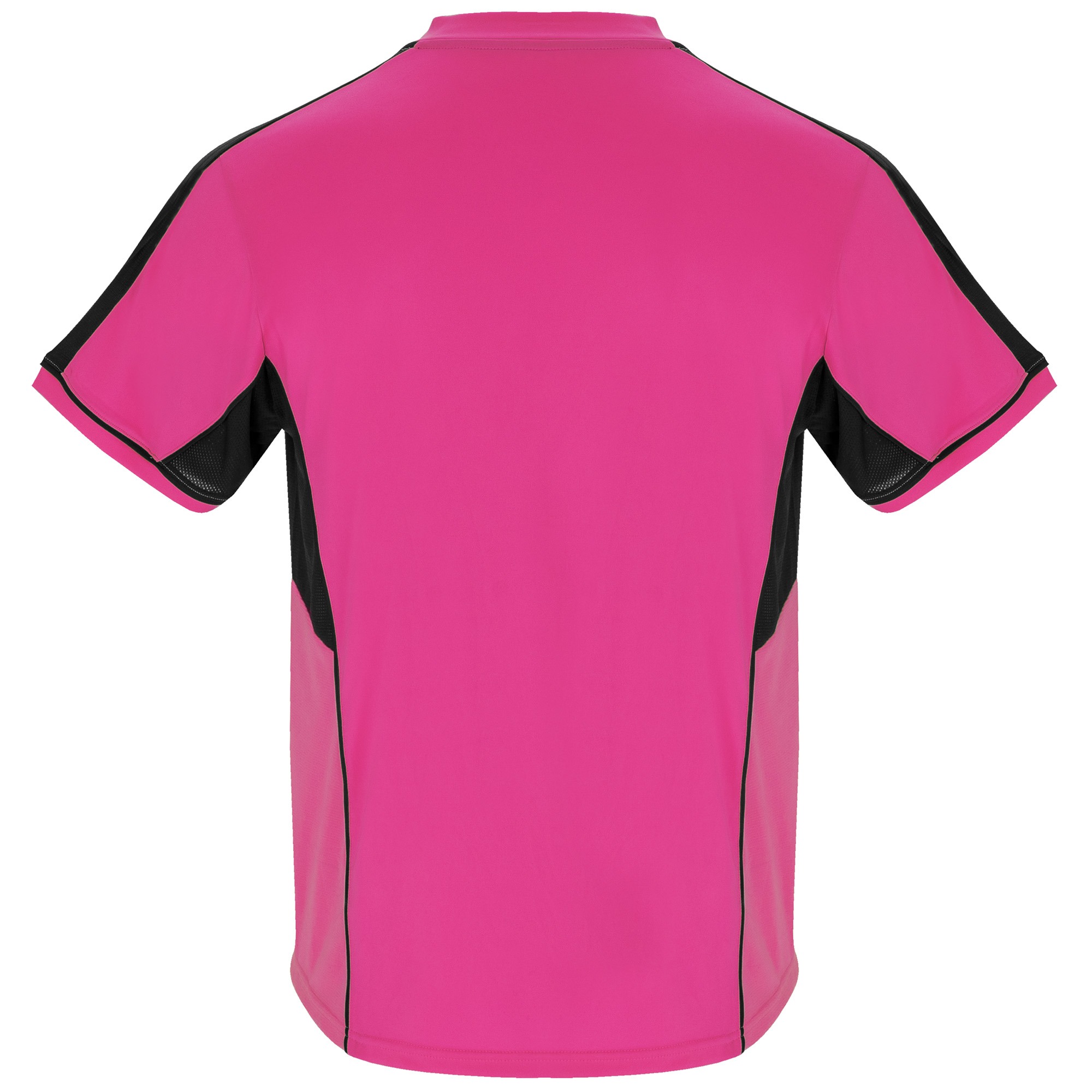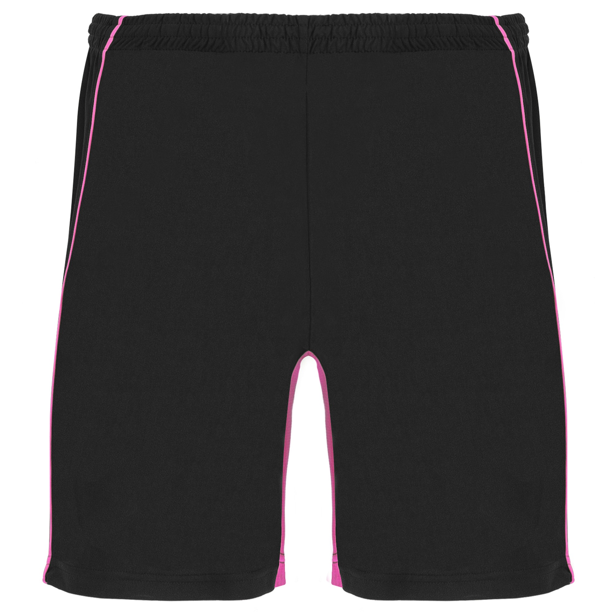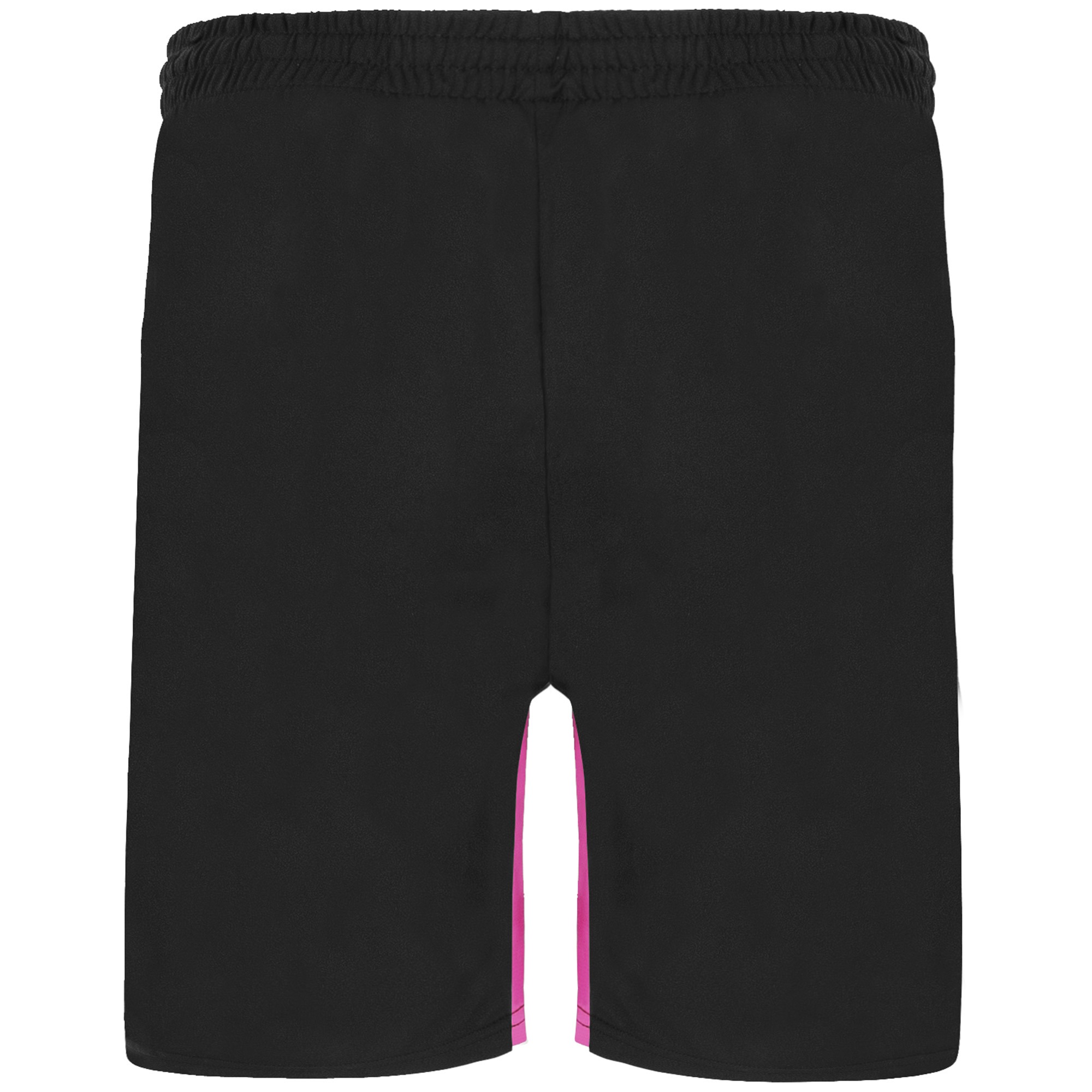 Completo sportivo unisex con combinazione di tre tessuti, maglietta con collo alla coreana e apertura con bottone a pressione, interno della manica in tessuto traspirante e pannelli laterali. Pantaloncino con vita regolabile e coulisse. Interno della gamba e bordi a contrasto in tessuto.