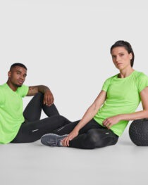 T-shirt donna aderente a maniche corte in cotone organico certificato OCS. Collo rotondo in costina 1×1. Copri cuciture rinforzate sul colletto. Cuciture laterali.