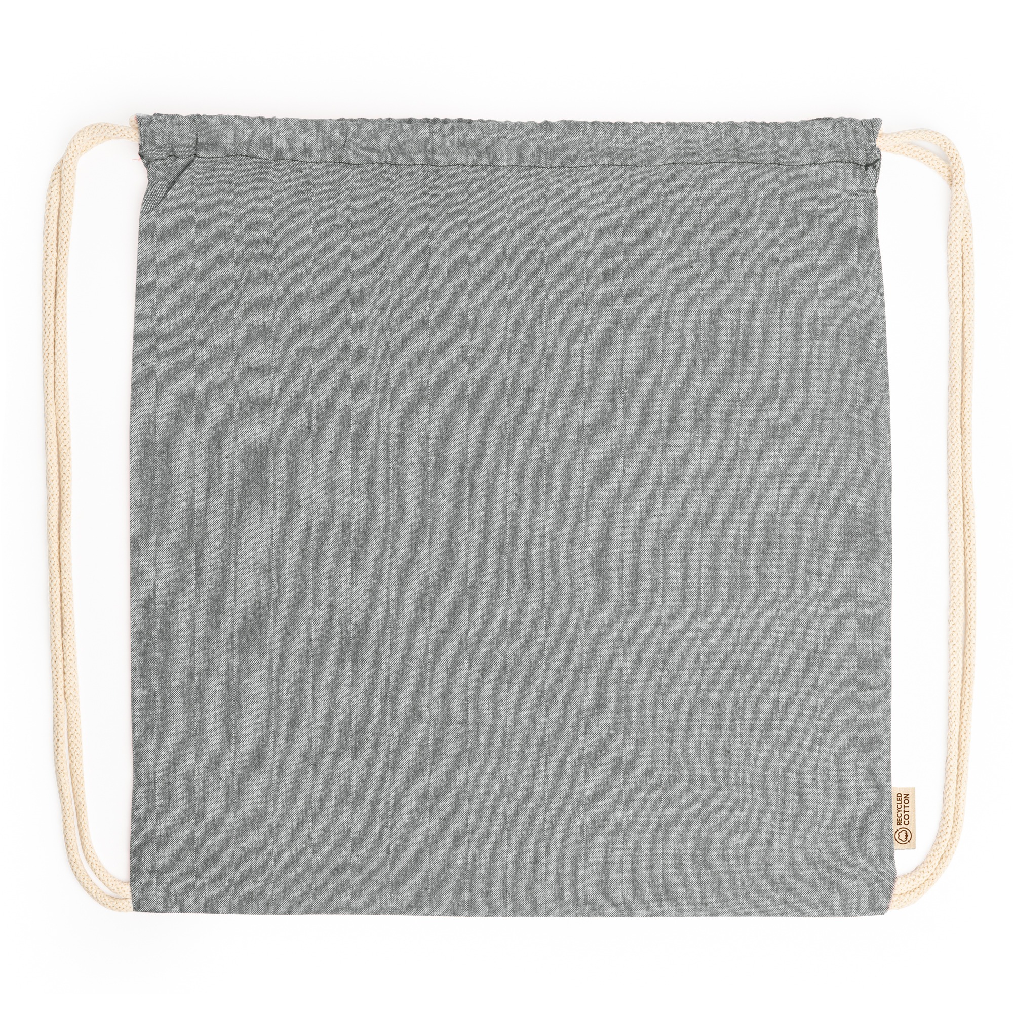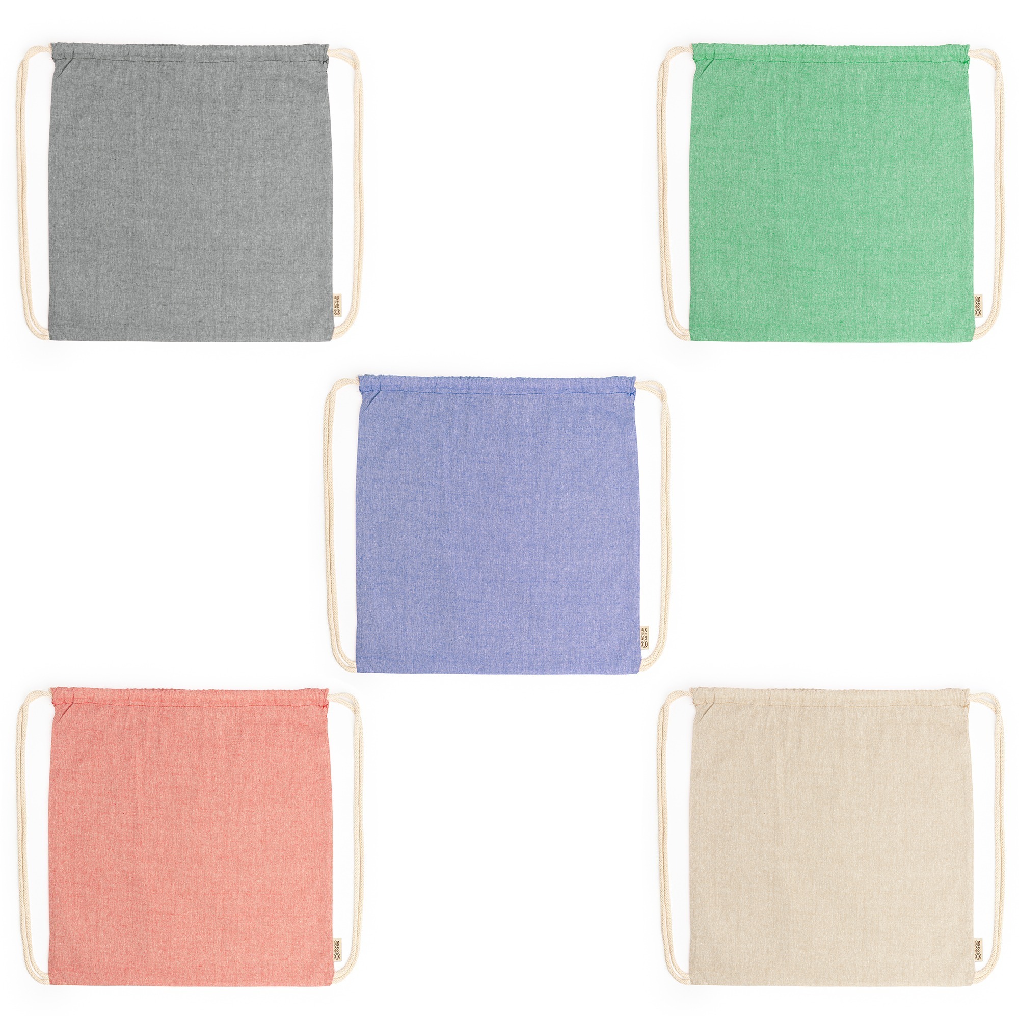 Zaino con coulisse in cotone riciclato da 120 g/mยฒ con finitura marmorizzata e coulisse di colore naturale. Disponibile in vari colori.