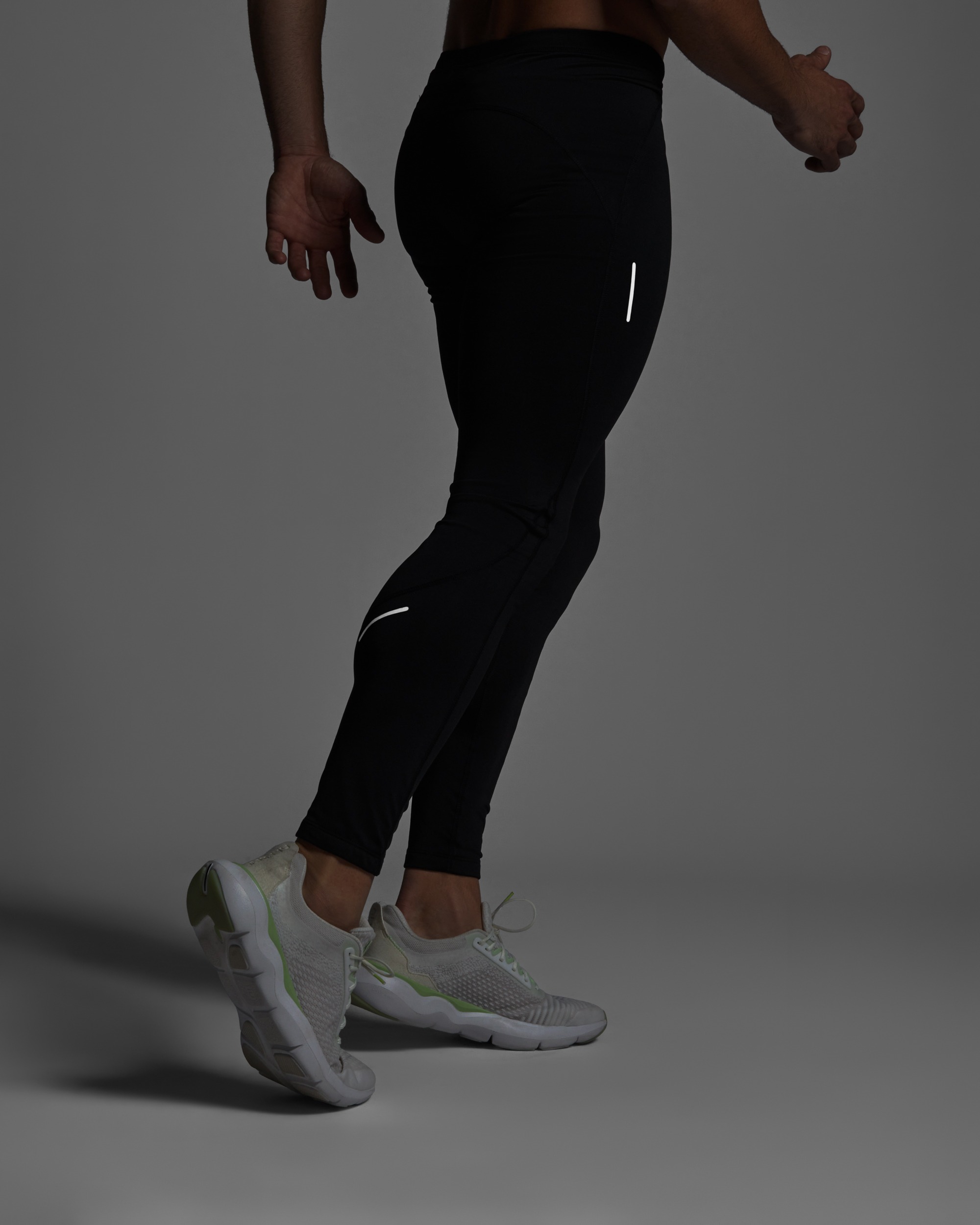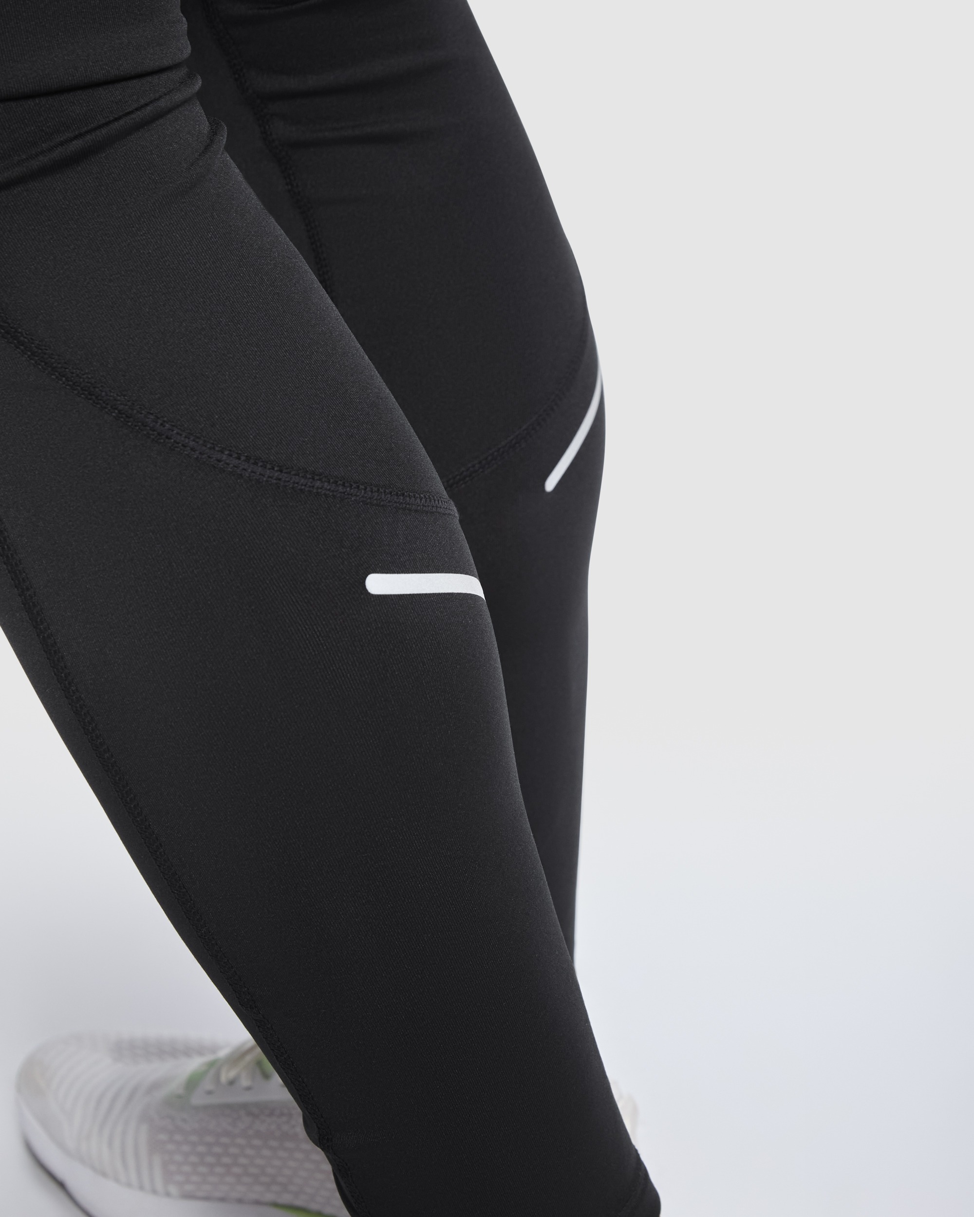 Leggins lungo tecnico per uomo con girovita elastico e cordoncino interno incrociato per facilitare la regolazione. Dettagli riflettenti. Tasca esterna sul retro con cerniera. Tessuto elastico ed adattabile al corpo.
