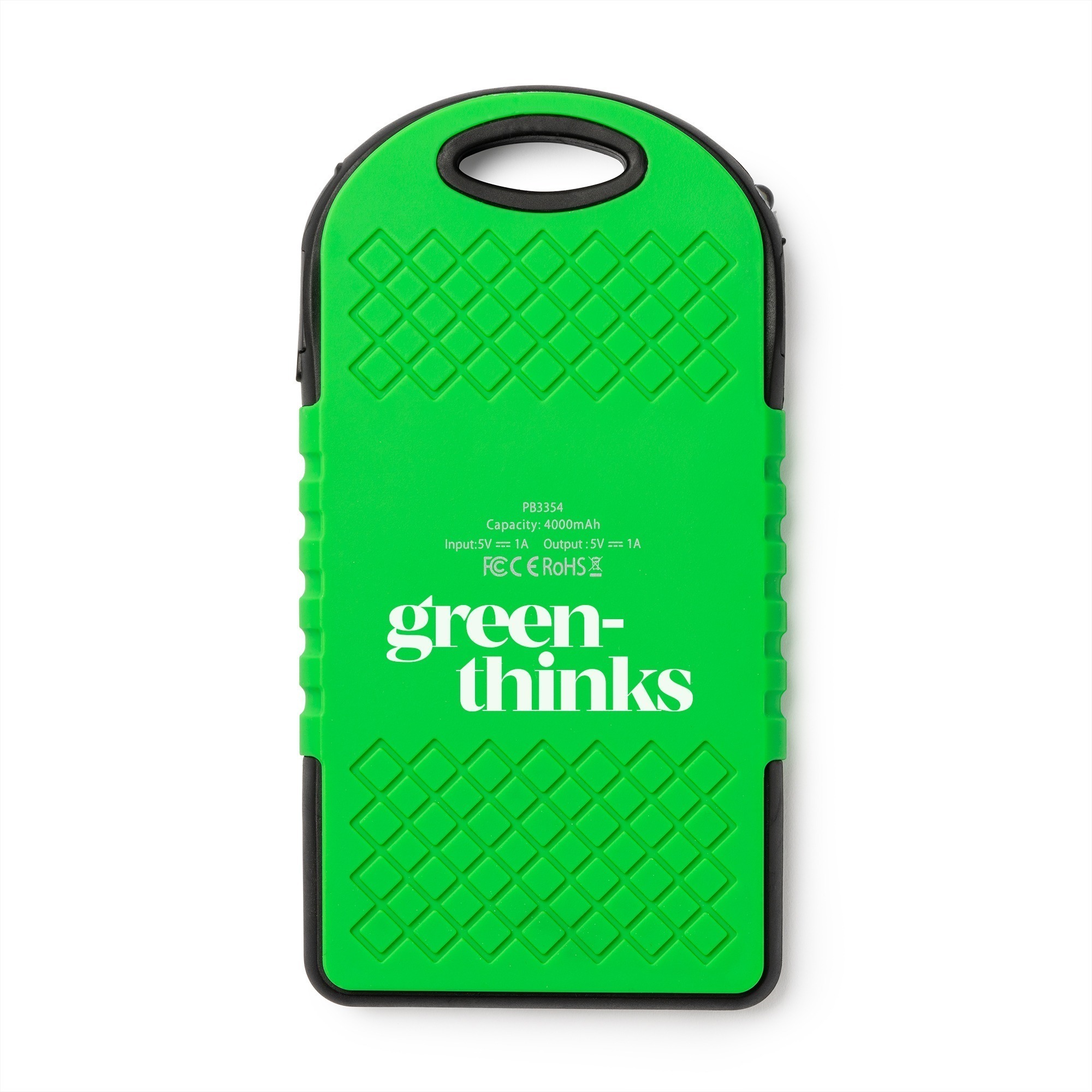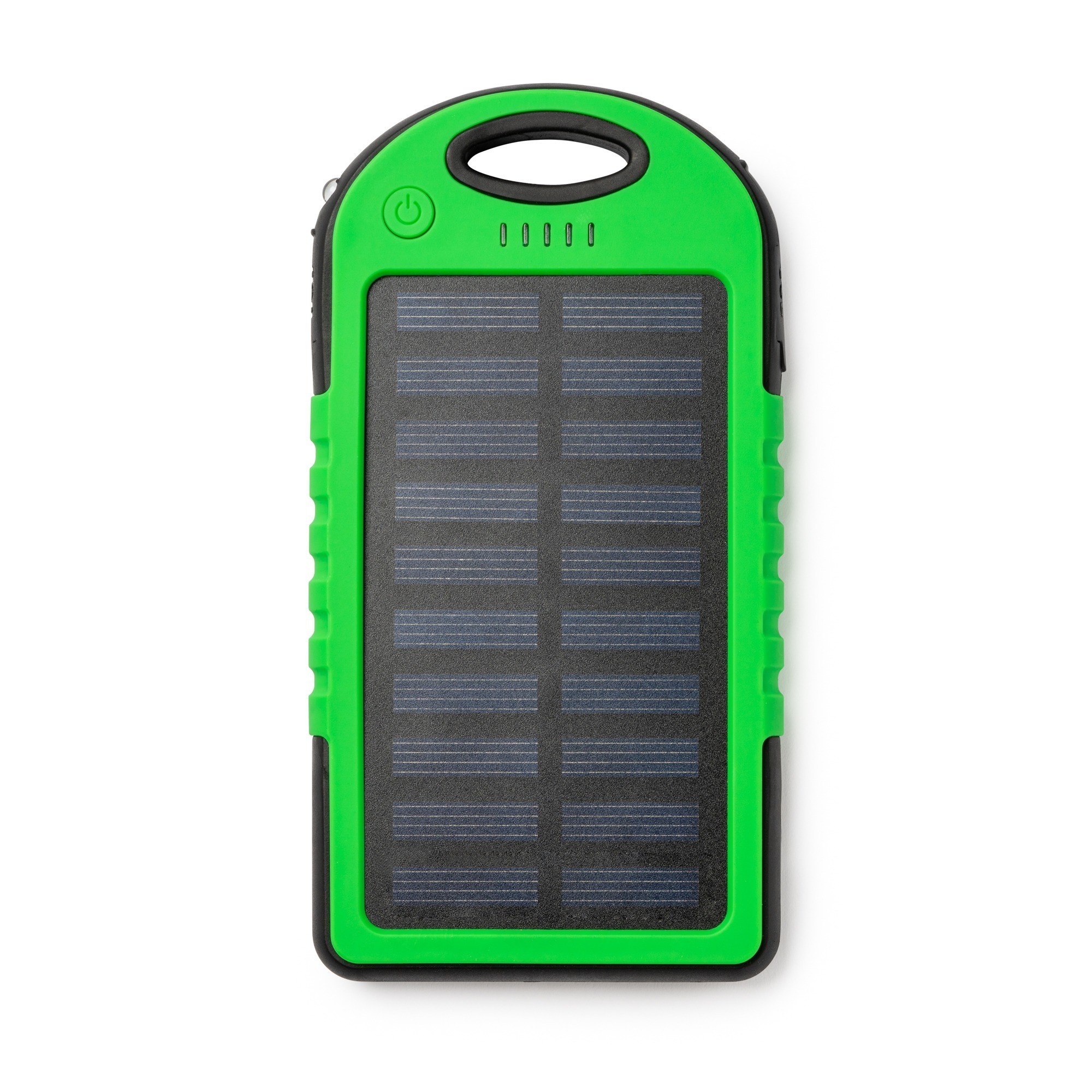 Batteria solare esterna, resistente agli spruzzi d’acqua e con elevata capacitร di carico. 4000 mAh. Indicatore e luce di carica a LED. Uscita corrente 5W/2.1A.