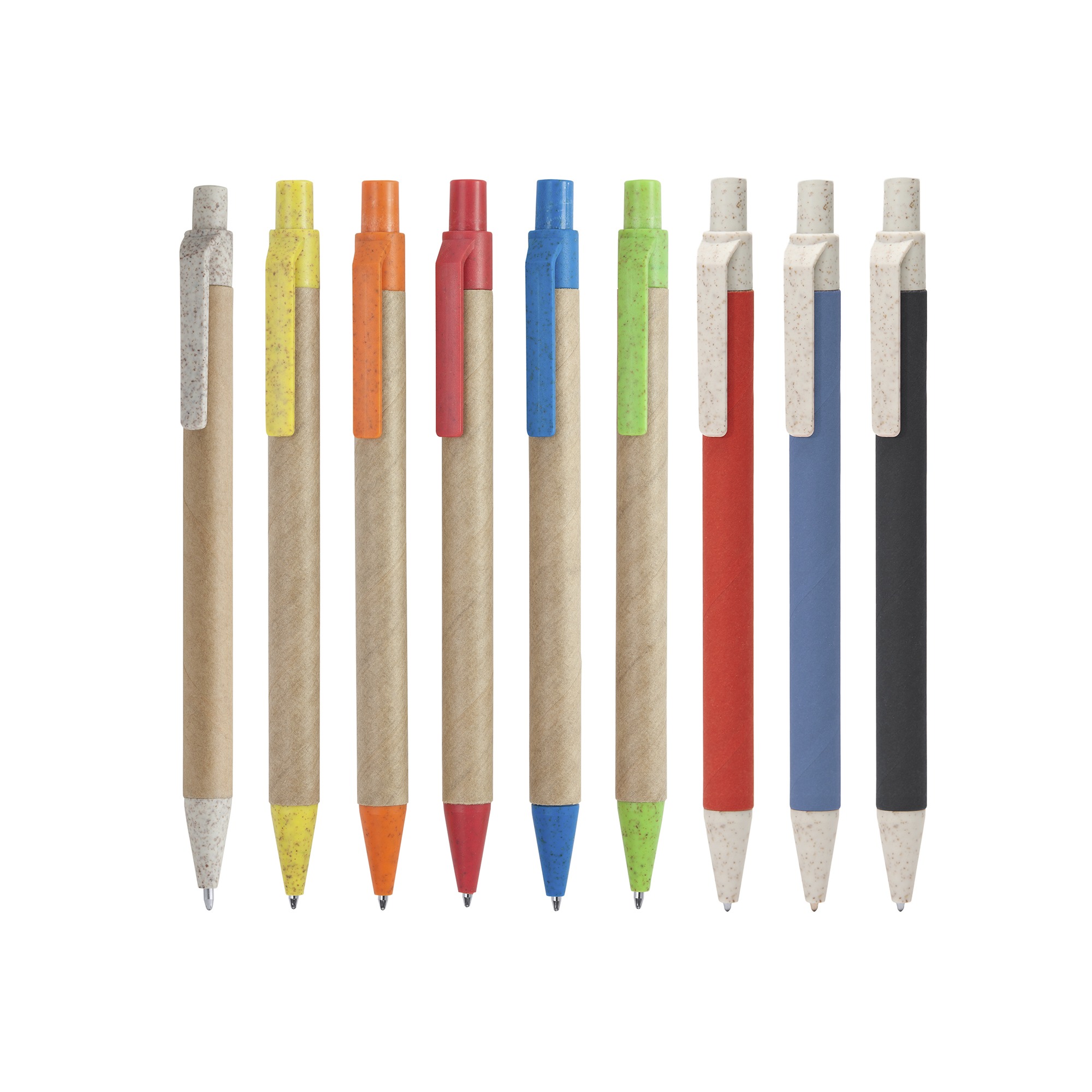 Penna a sfera con meccanismo a scatto realizzata in cartone riciclato. Con punta e clip in fibra di grano e ABS. Inchiostro blu.