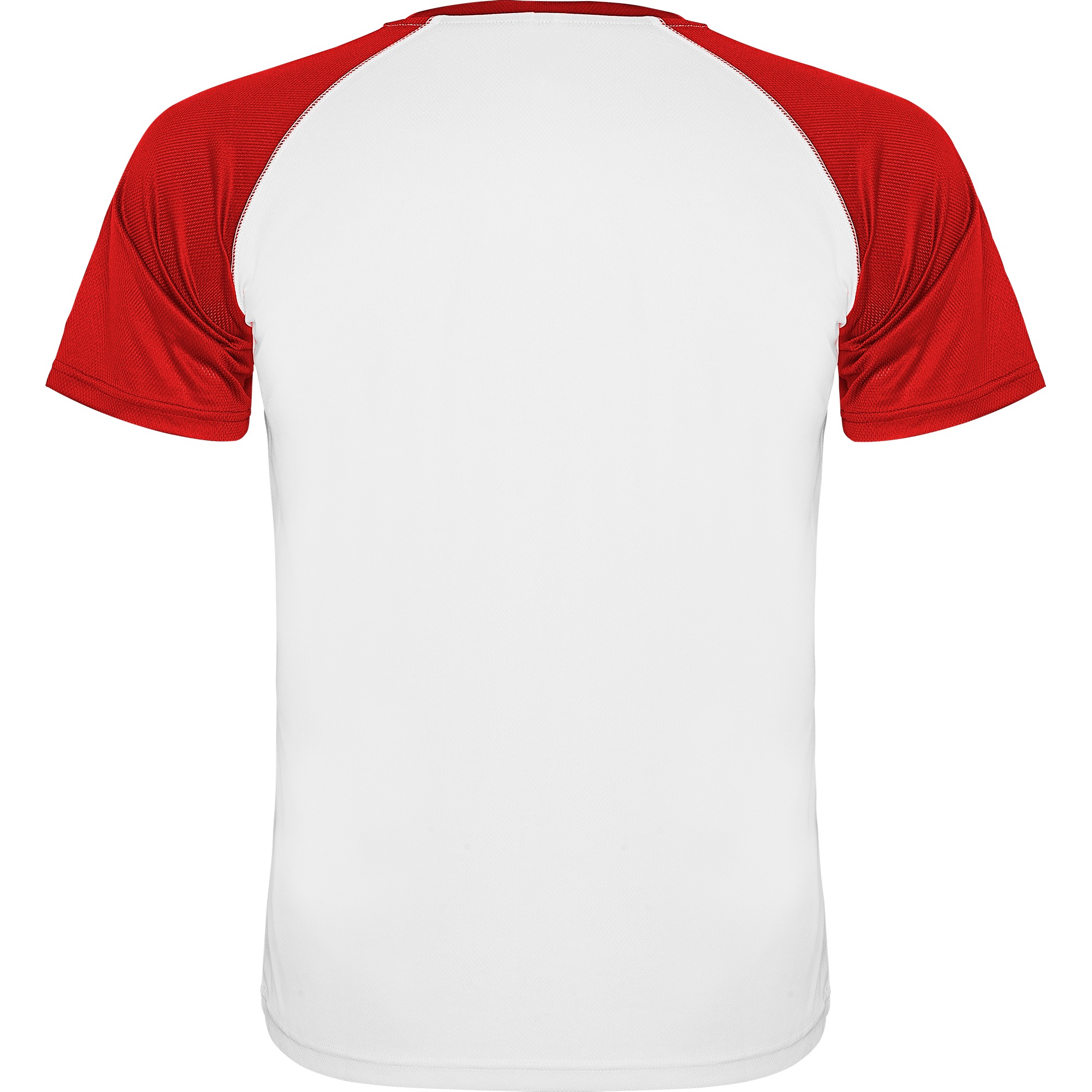 T shirt sportiva manica corta taglio raglan. Girocollo in contrasto con copri cuciture di rinforzo all’interno.