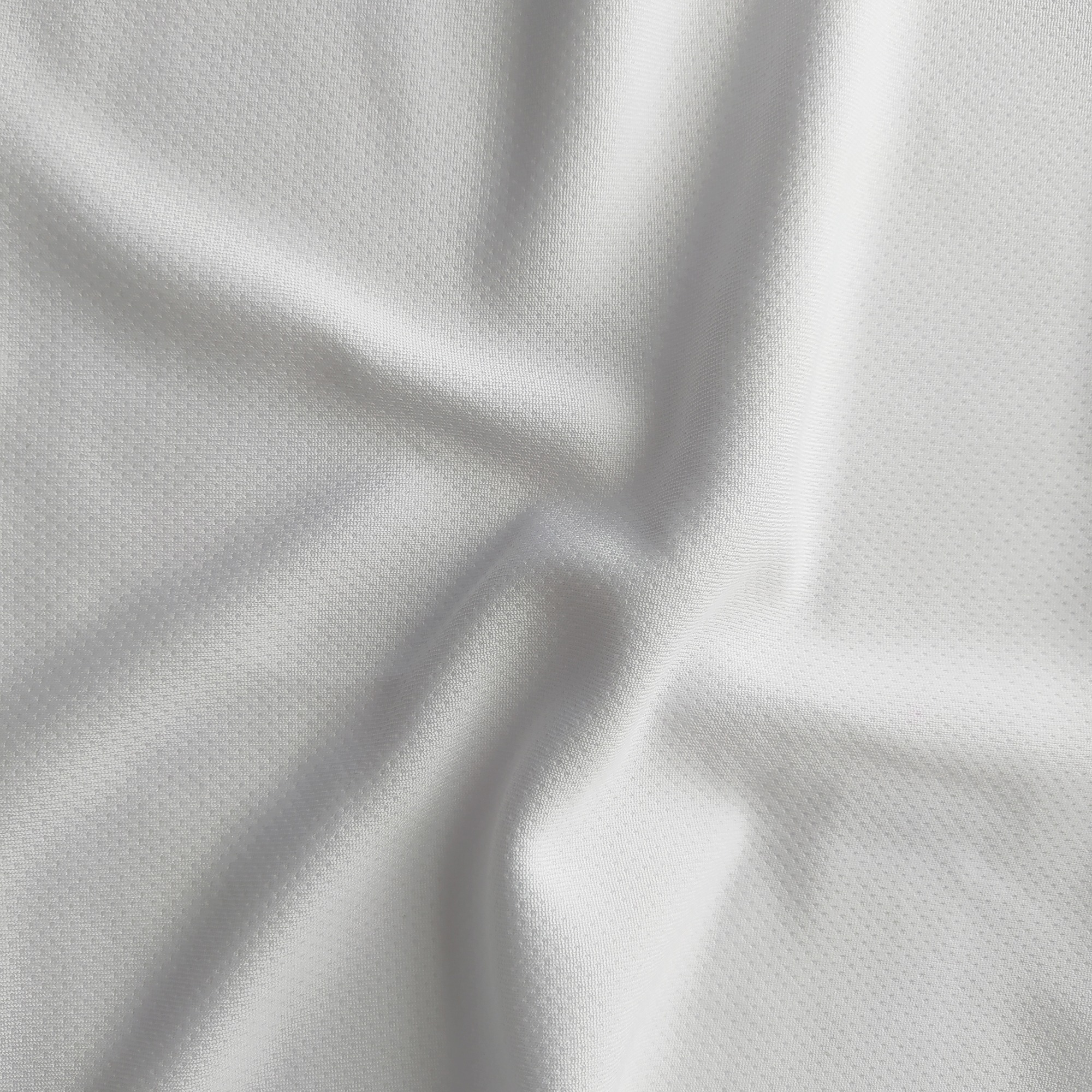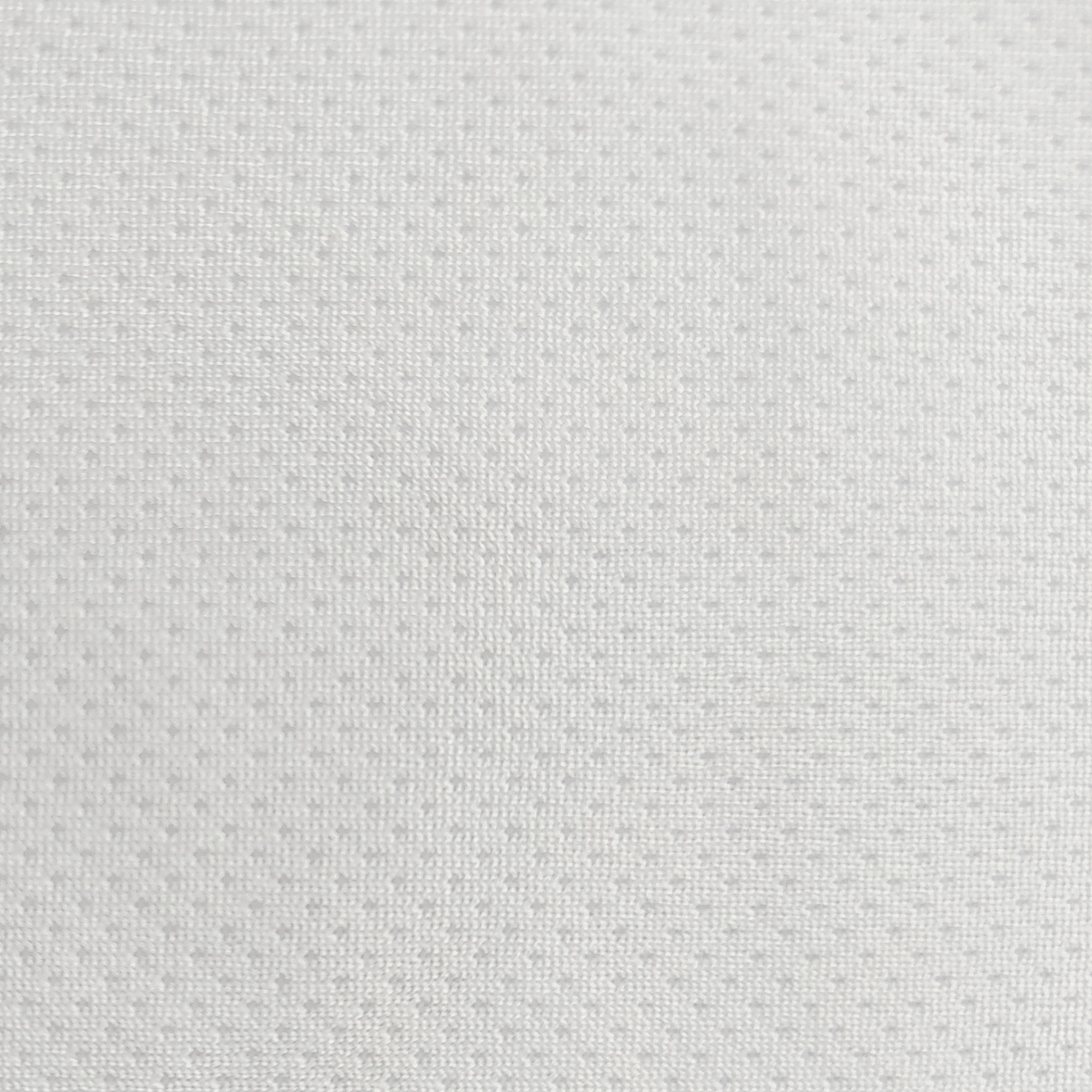 Tessuto in poliestere bianco, con una larghezza di 155 cm. Questo tessuto รจ ideale per abbigliamento tecnico e sportivo. Ha un disegno microforato su una delle sue facce. ร un tessuto molto leggero nel movimento e nel drappeggio ed รจ molto facile da pulire. Resa di 6,90 mยฒ/kg. Speciale per sublimazione e accetta serigrafia, transfer ed altre lavorazioni.