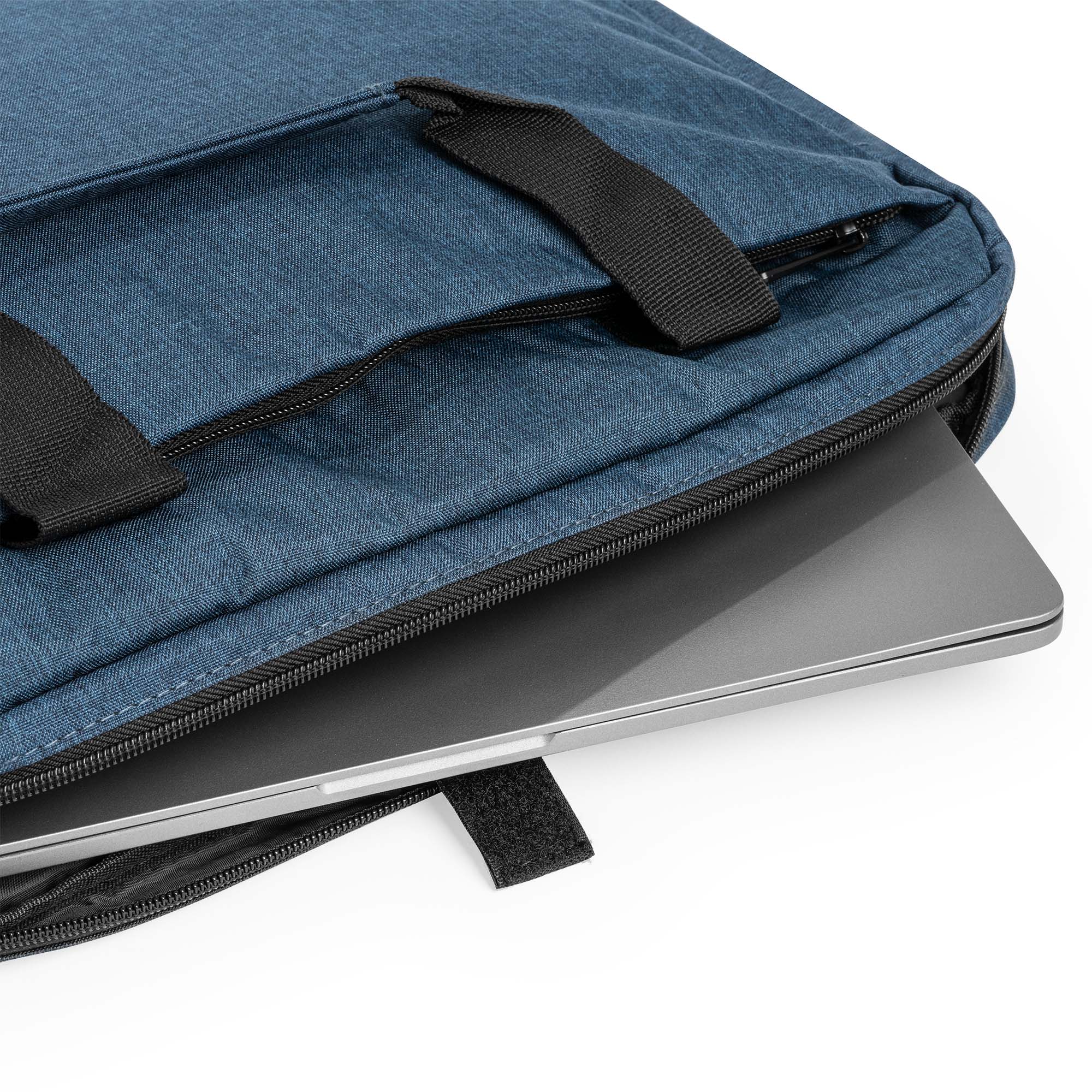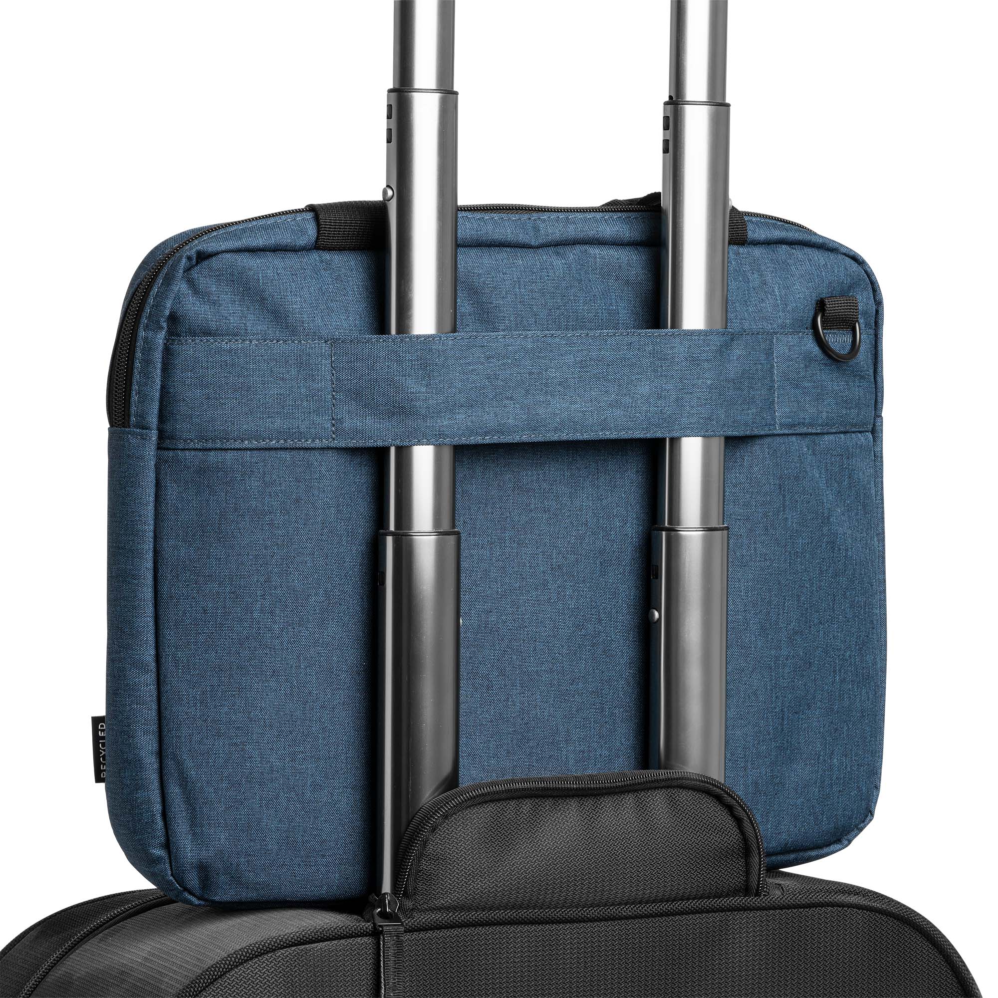 Custodia imbottita per il vostro computer portatile in poliestere riciclato 600D RPET con finitura mรฉlange. Due scomparti con cerniera impermeabile. Maniglie e tracolla regolabile in tinta. Cinghia per trolley inclusa.