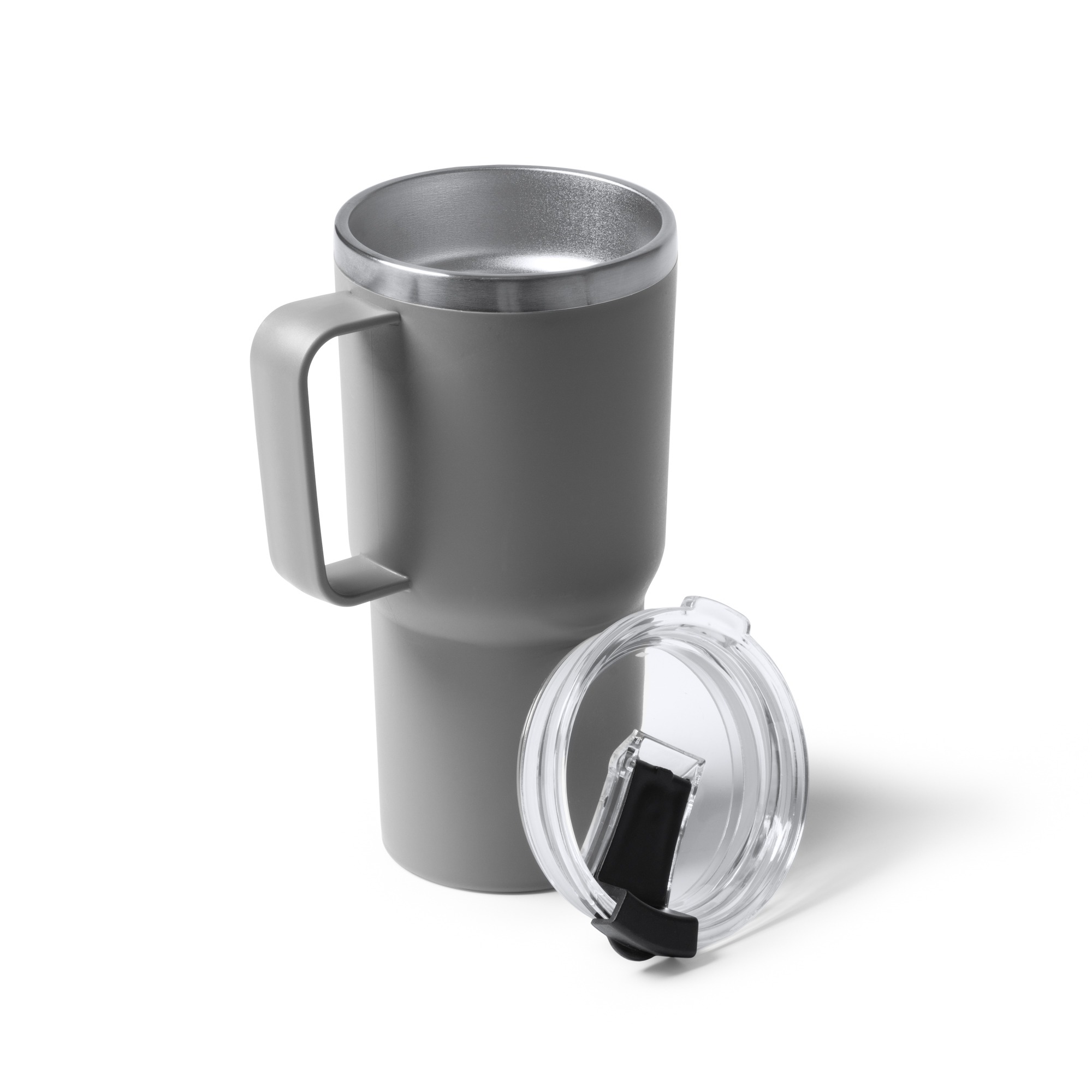 Tazza a doppio strato, in acciaio inox 304 e PP. Include un coperchio di misurazione. Capacitร : 500 ml. Confezione in scatola.