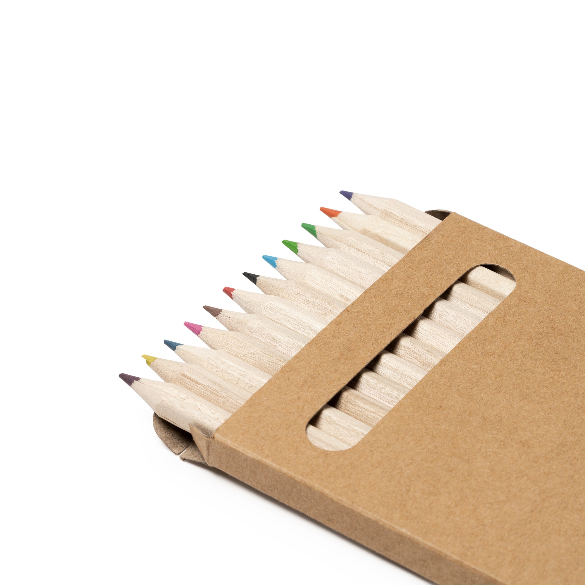 Set di 12 matite in legno in scatola di cartone riciclato.