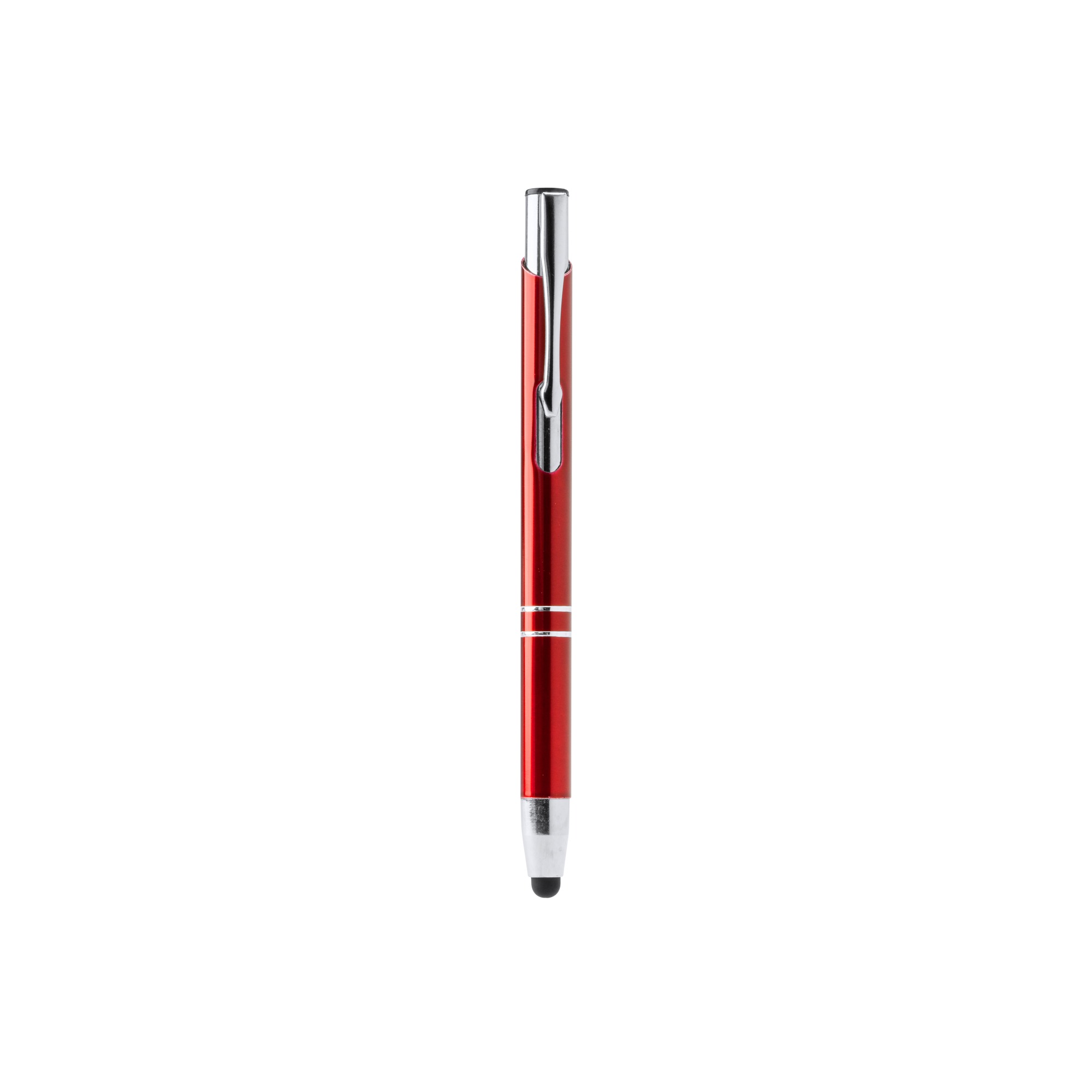 Biro con canna in alluminio e pulsante in finitura anodizzata. Puntatore tattile e ricarica di inchiostro blu Jumbo. Disponibile in vari colori.