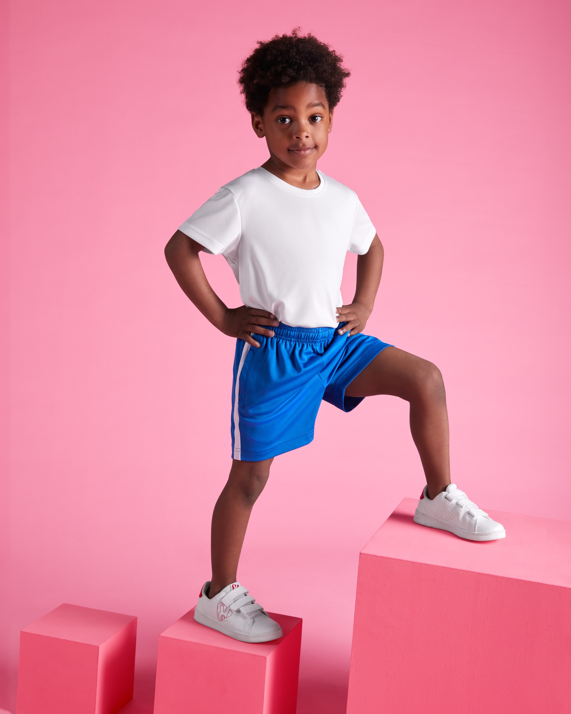 Pantaloncini multisport. Tasche laterali con cerniera. Girovita elastico con cordoncini interni incrociati in contrasto. Fascia laterale in contrasto.