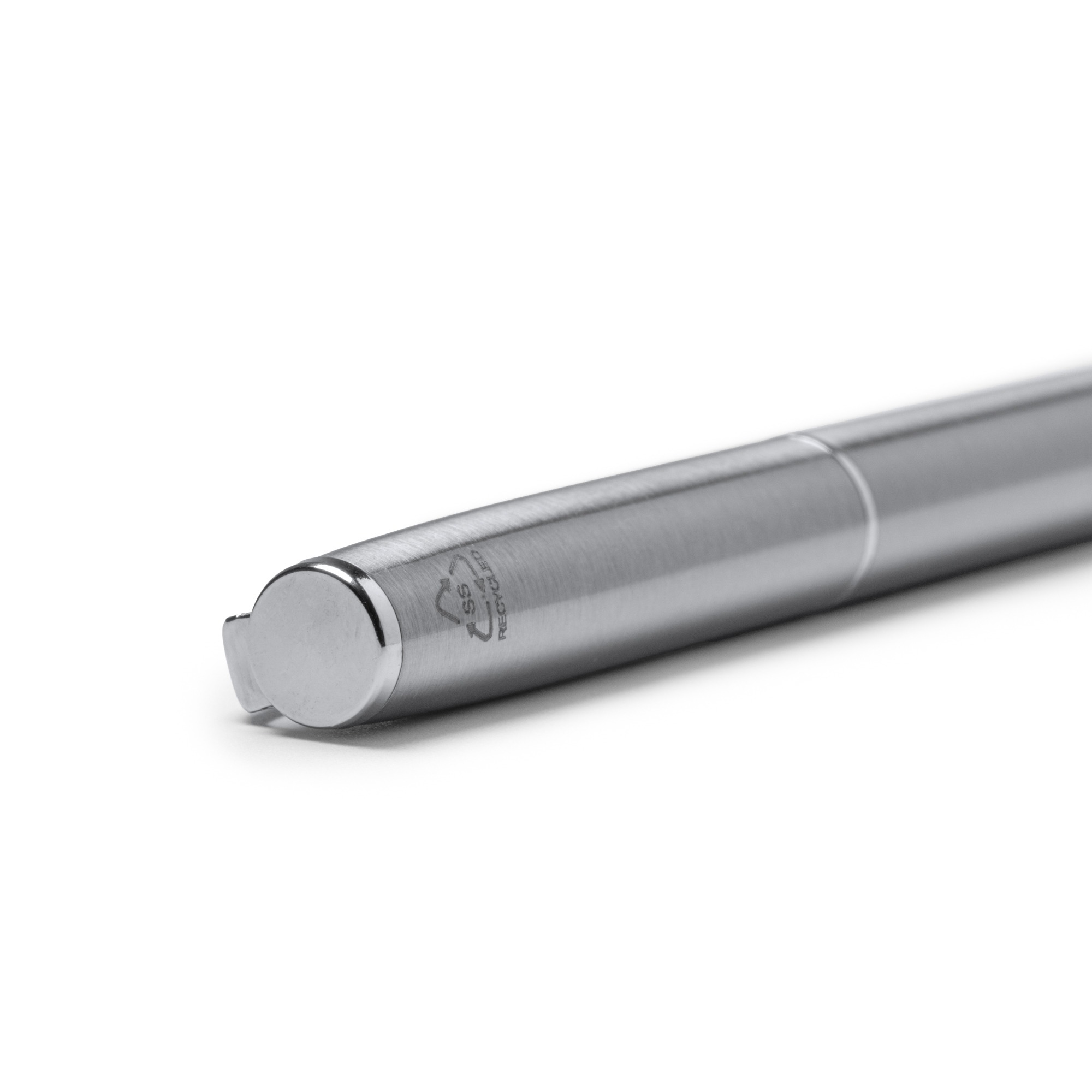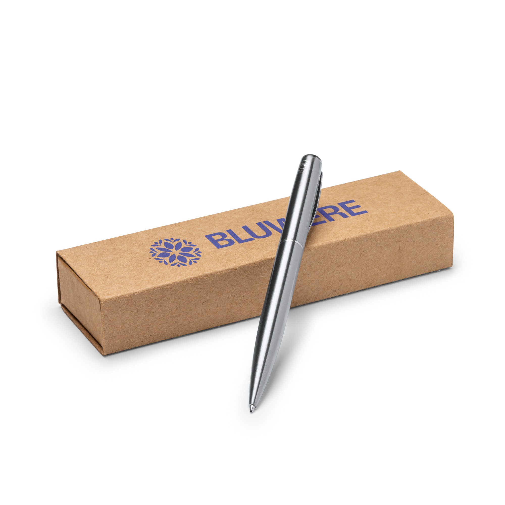 Biro girevole con corpo in acciaio inossidabile riciclato, dal design robusto e sostenibile. Inchiostro blu in cartuccia metallica. Presentata in un’elegante scatola kraft individuale. Ideale come regalo, unisce funzionalitร e consapevolezza ambientale.
