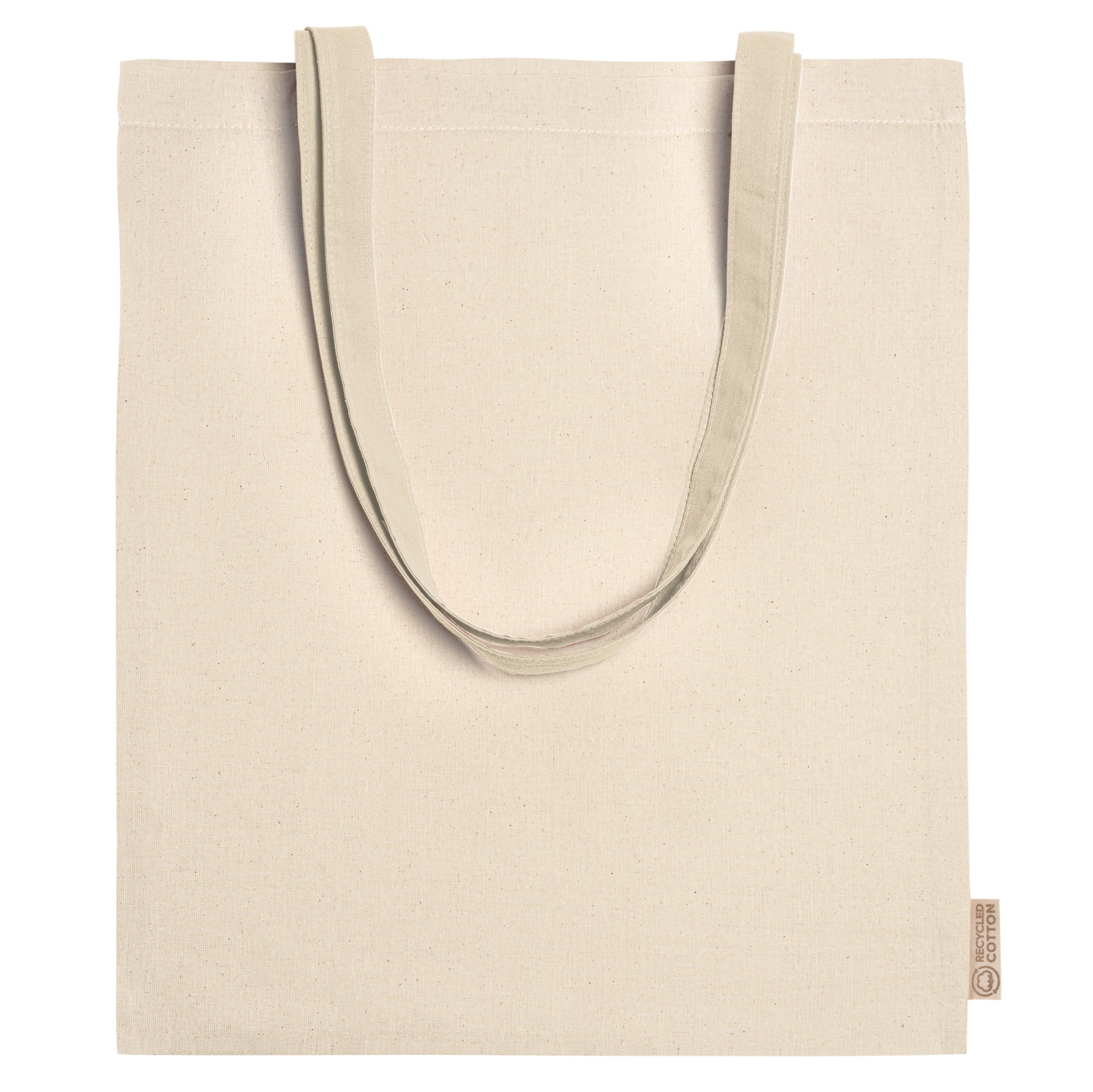 Borsa in corda al 70% in cotone riciclato e al 30% in poliestere riciclato da 140g/mยฒ. Tracolla lunga 70 cm.