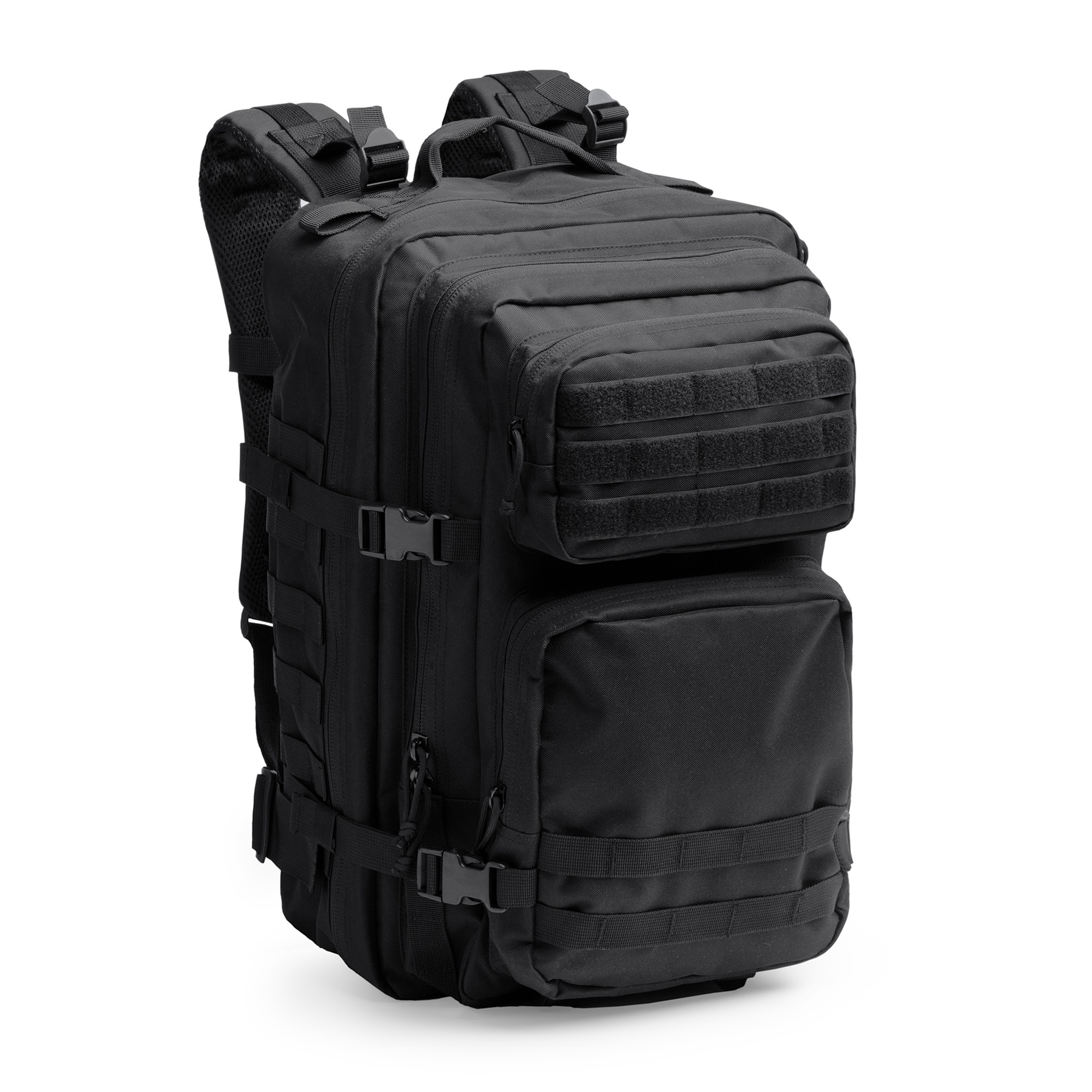 Zaino in stile sportivo realizzato in resistente poliestere 600D. Schienale e spalle imbottiti. Ampia gamma di tasche anteriori e interne. Scomparto principale ad apertura totale con doppia chiusura a strappo e 3 tasche interne. Area frontale con velcro. Regolatori laterali. Tasca antifurto sul retro. Grande capacitร di 45 L. Uno zaino completo per qualsiasi attivitร .