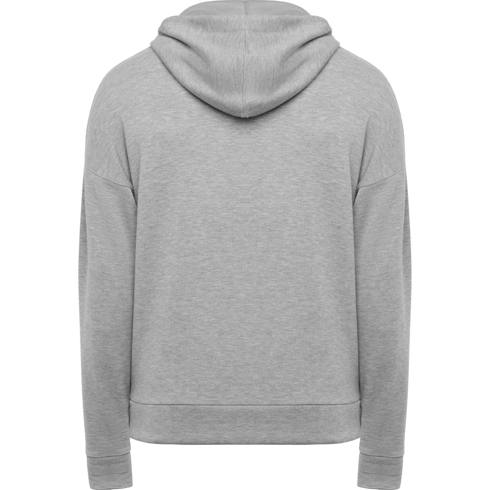 Felpa unisex con cappuccio in tessuto leggero. Tasche laterali. Polsini e cintura posteriore uguale al tessuto principale.