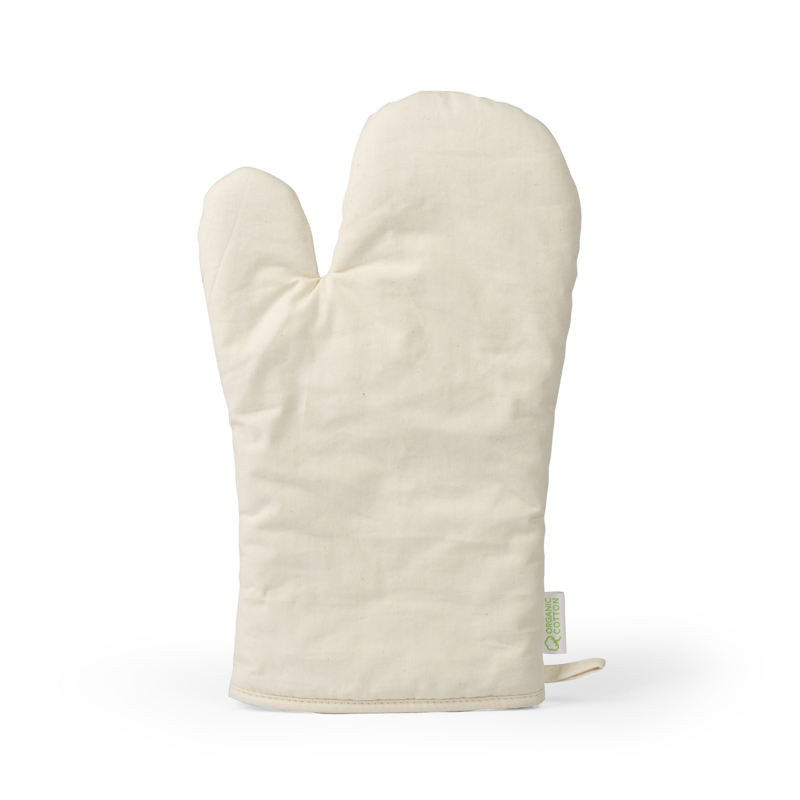 Guanto ecologico in 100% cotone organico. Pratico e comodo per l’uso quotidiano. Ha un lato liscio ideale per la stampa e un cinta per appenderlo.