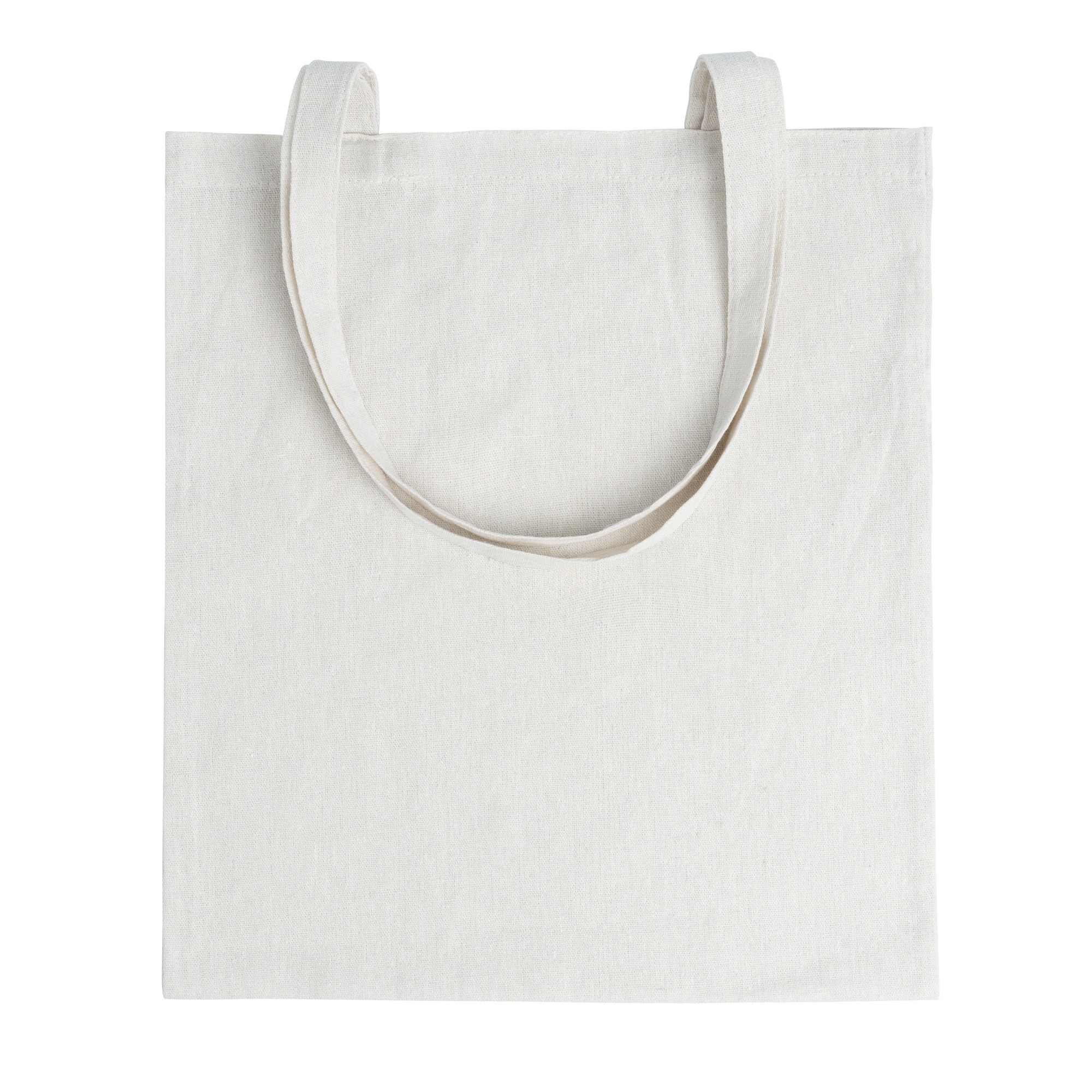 Borsa stile shopper, adatta per sublimazione, in poliestere resistente. Manici lunghi 70 cm.