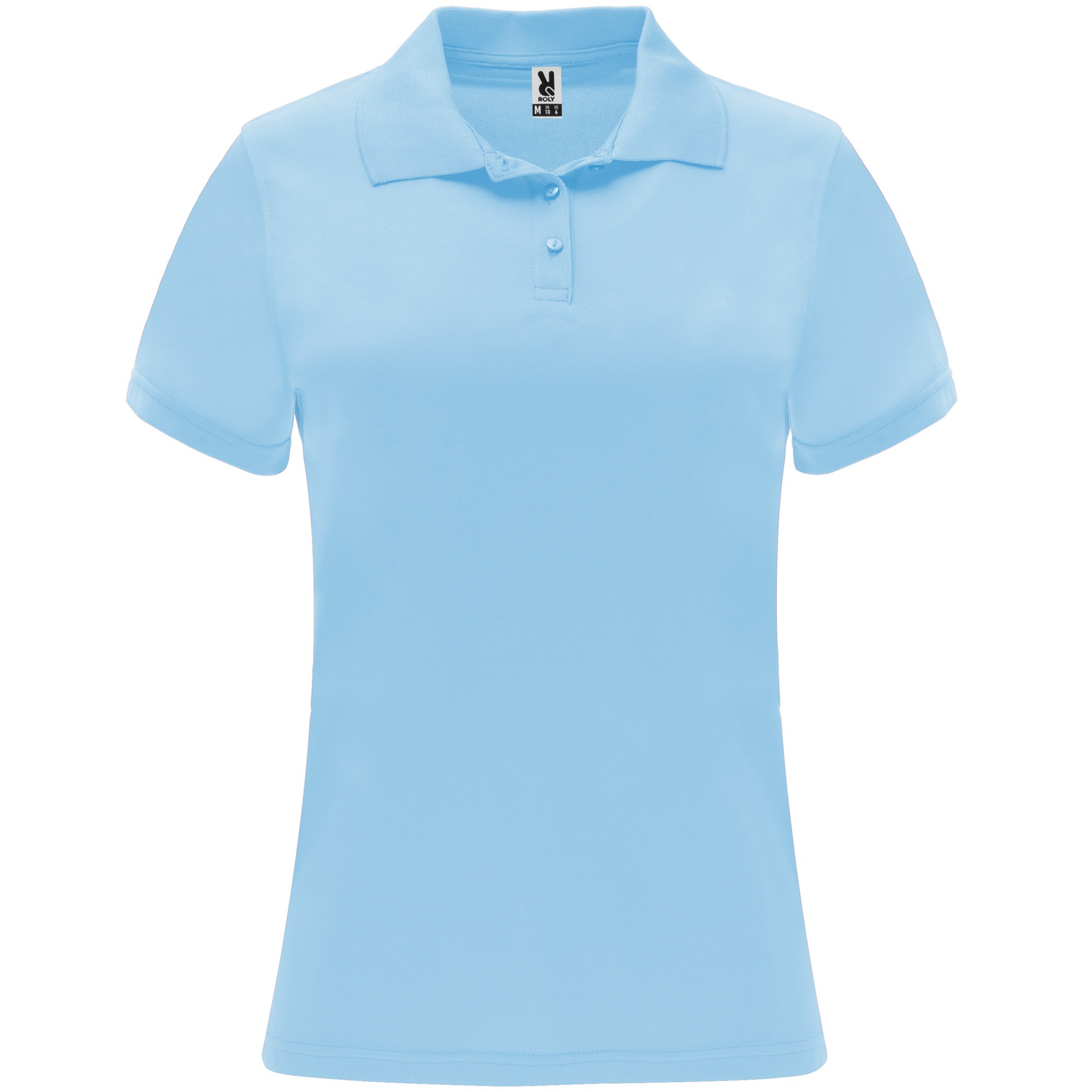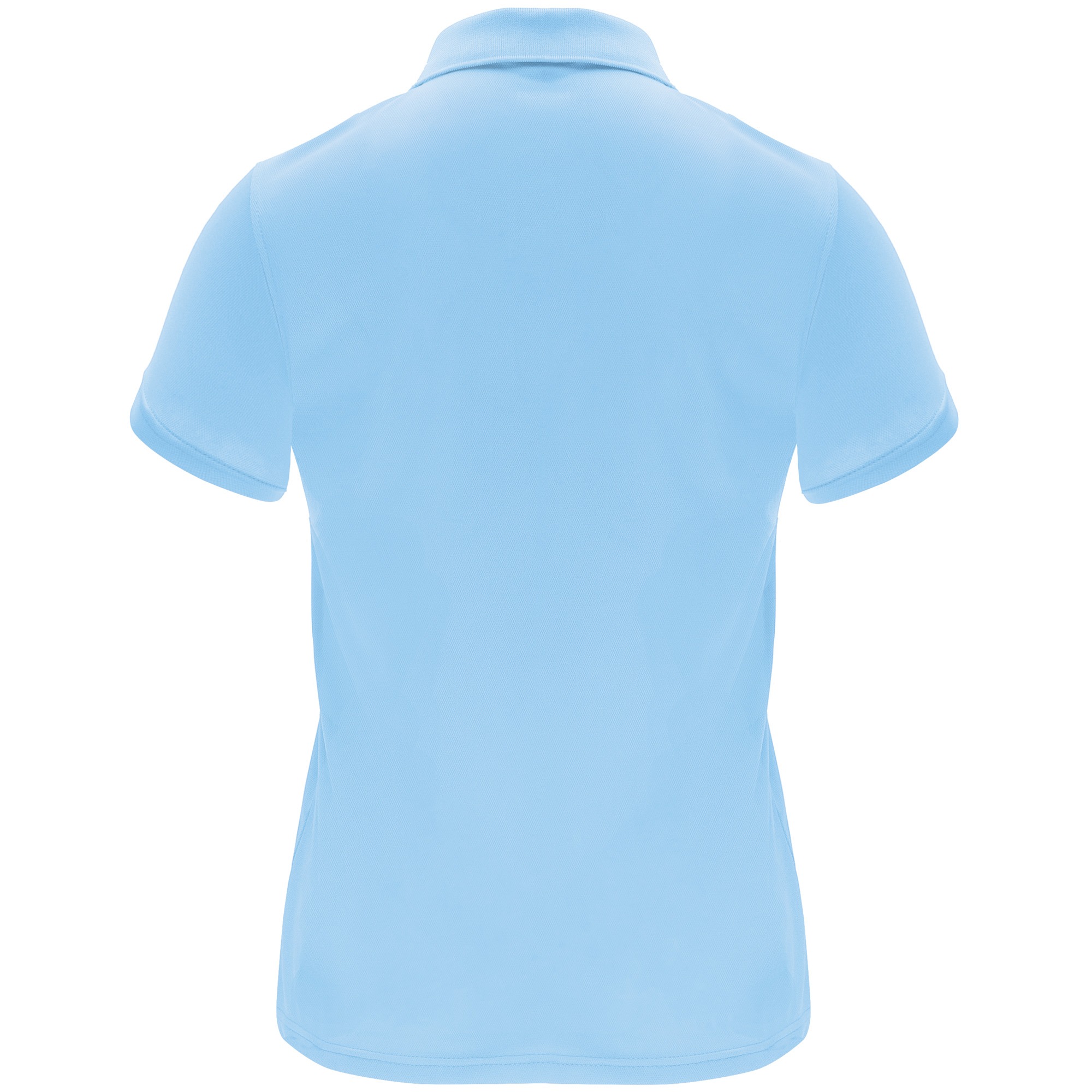 Polo tecnica a manica corta da donna. Collo tricot con chiusura a tre bottoni. Taglio sfiancato.