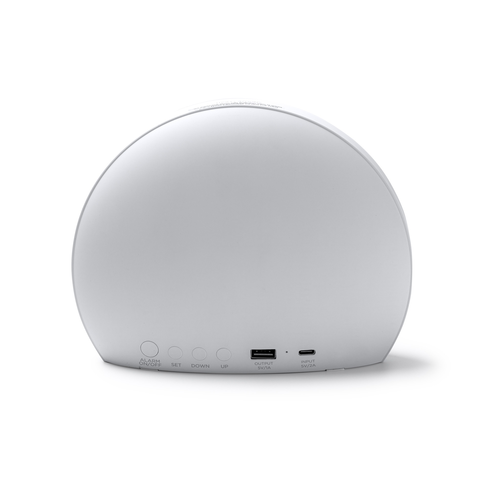 Lampada sveglia in ABS riciclato con modalitร di illuminazione progressiva. Funzionalitร : ora, data e temperatura. Luce a LED in diversi colori. Cavo incluso. Confezione in scatola dal design ecologico.