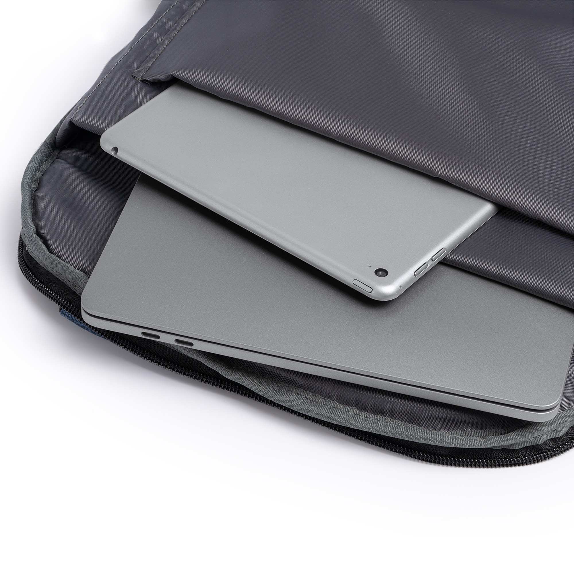 Questo zaino รจ dotato di due scomparti principali imbottiti per proteggere il computer portatile da 15″ e il tablet. Dispone inoltre di una tasca frontale esterna imbottita, di una tasca per la maniglia e di una tasca antifurto imbottita sul retro.