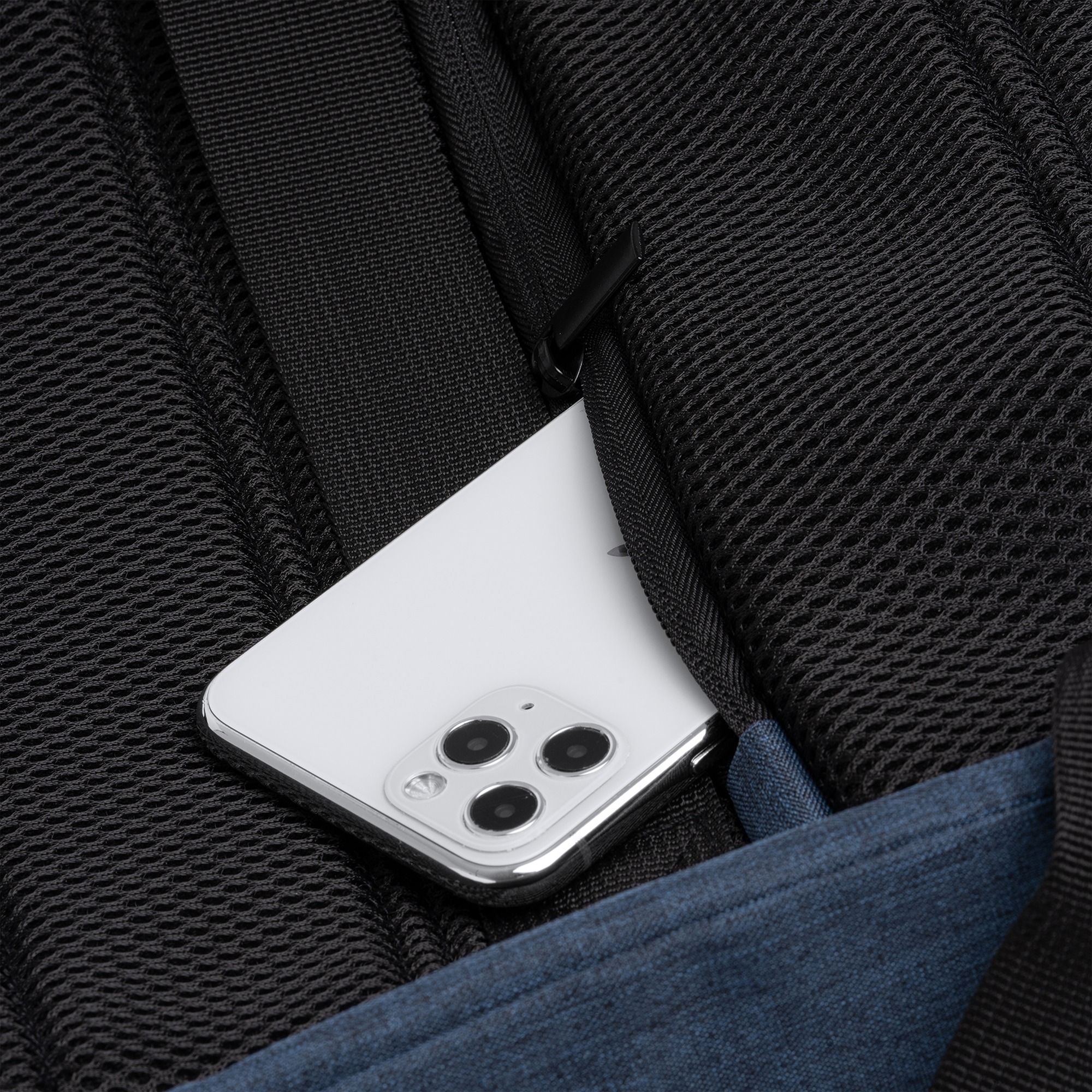 Lo zaino antifurto RPET 300 D รจ un’opzione sicura e sostenibile per trasportare i propri effetti personali in tutta tranquillitร . Con un design ergonomico, le cinghie e lo schienale imbottiti offrono un comfort che dura tutto il giorno.