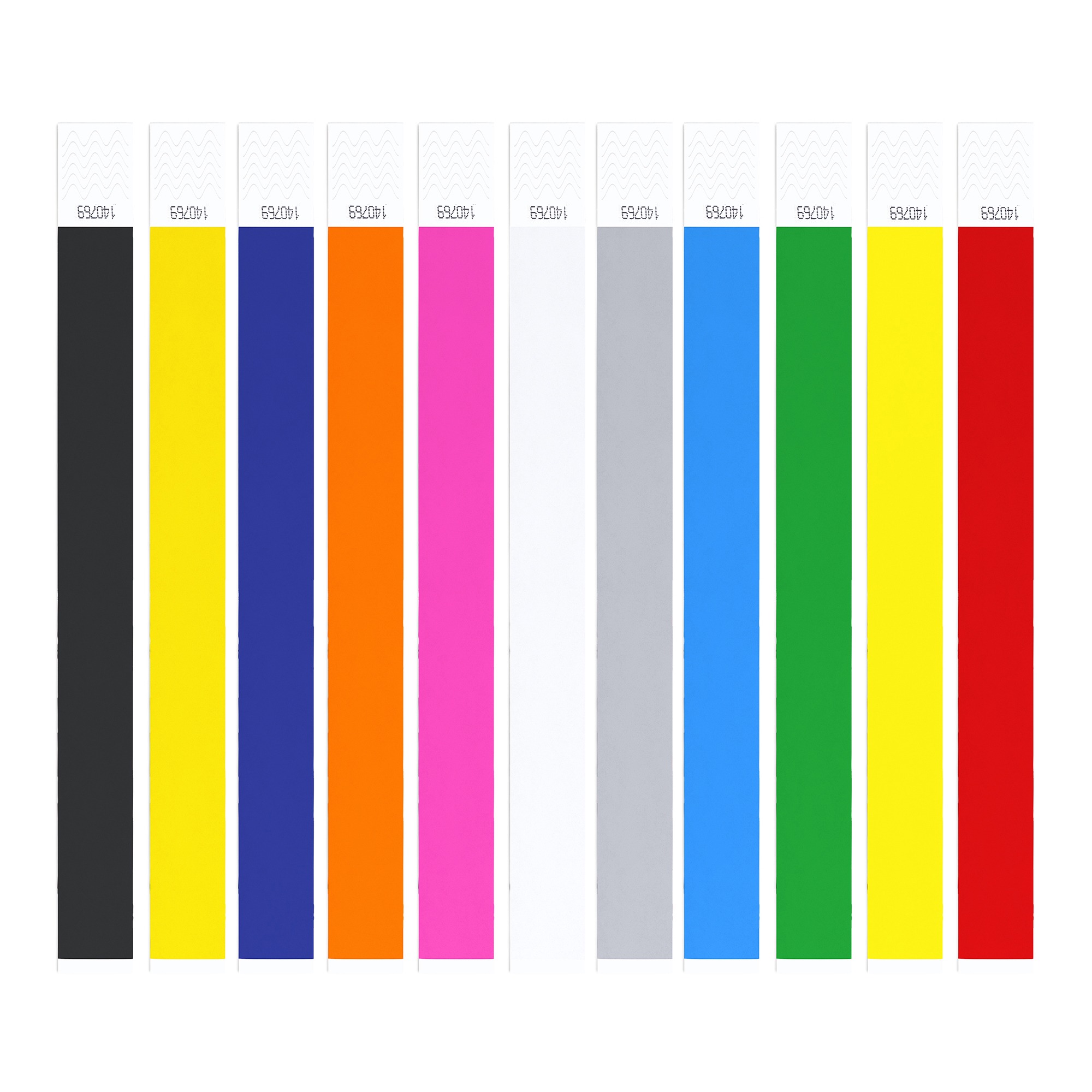 Bracciale per eventi in fibra sintetica con numerazione individuale. Presentato in fogli da 10 unitร .