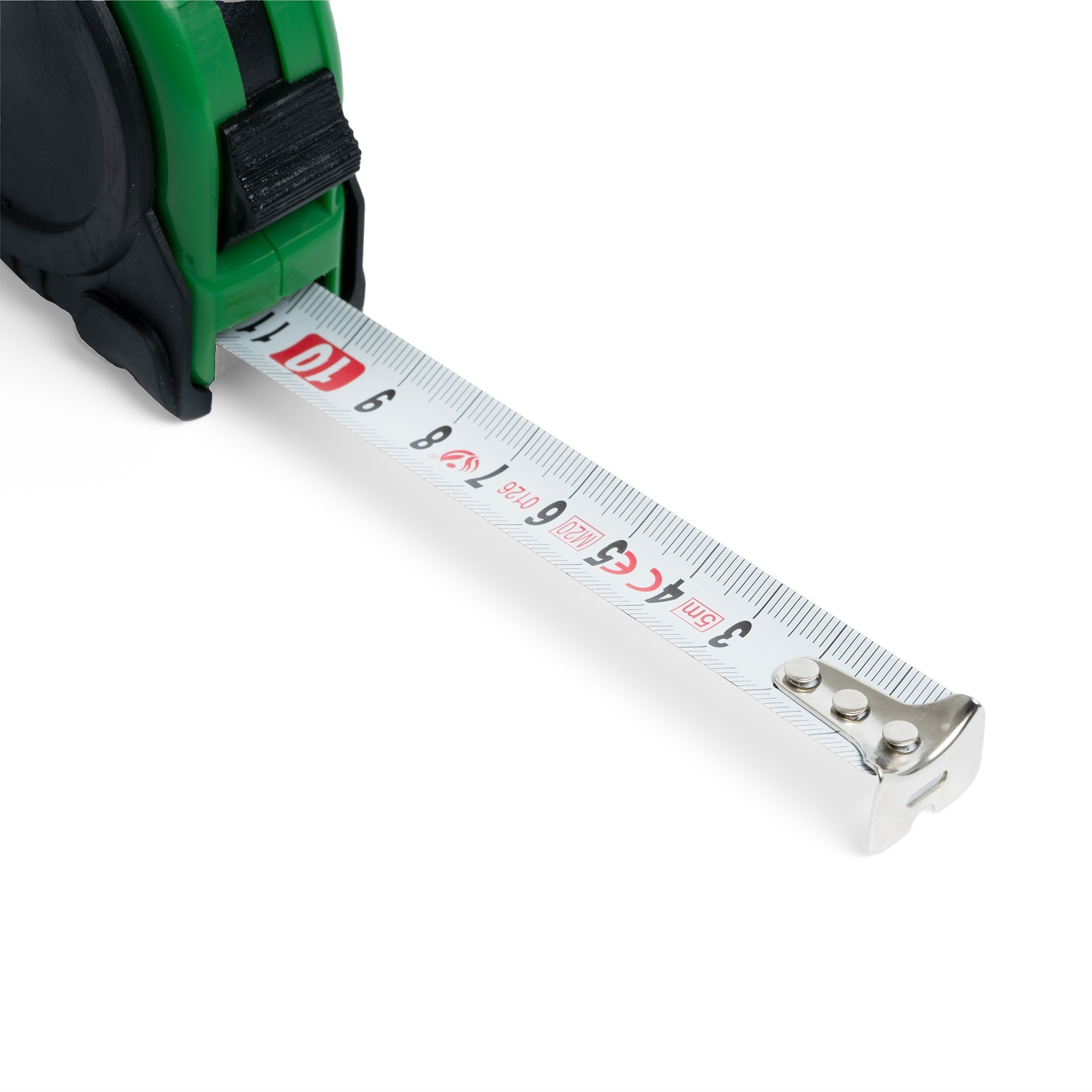 Metro a nastro retrattile omologato da 5 metri con meccanismo di bloccaggio e nastro in metallo. Corpo colorato con copertura in gomma, clip in metallo e tracolla. Confezione in scatola singola.