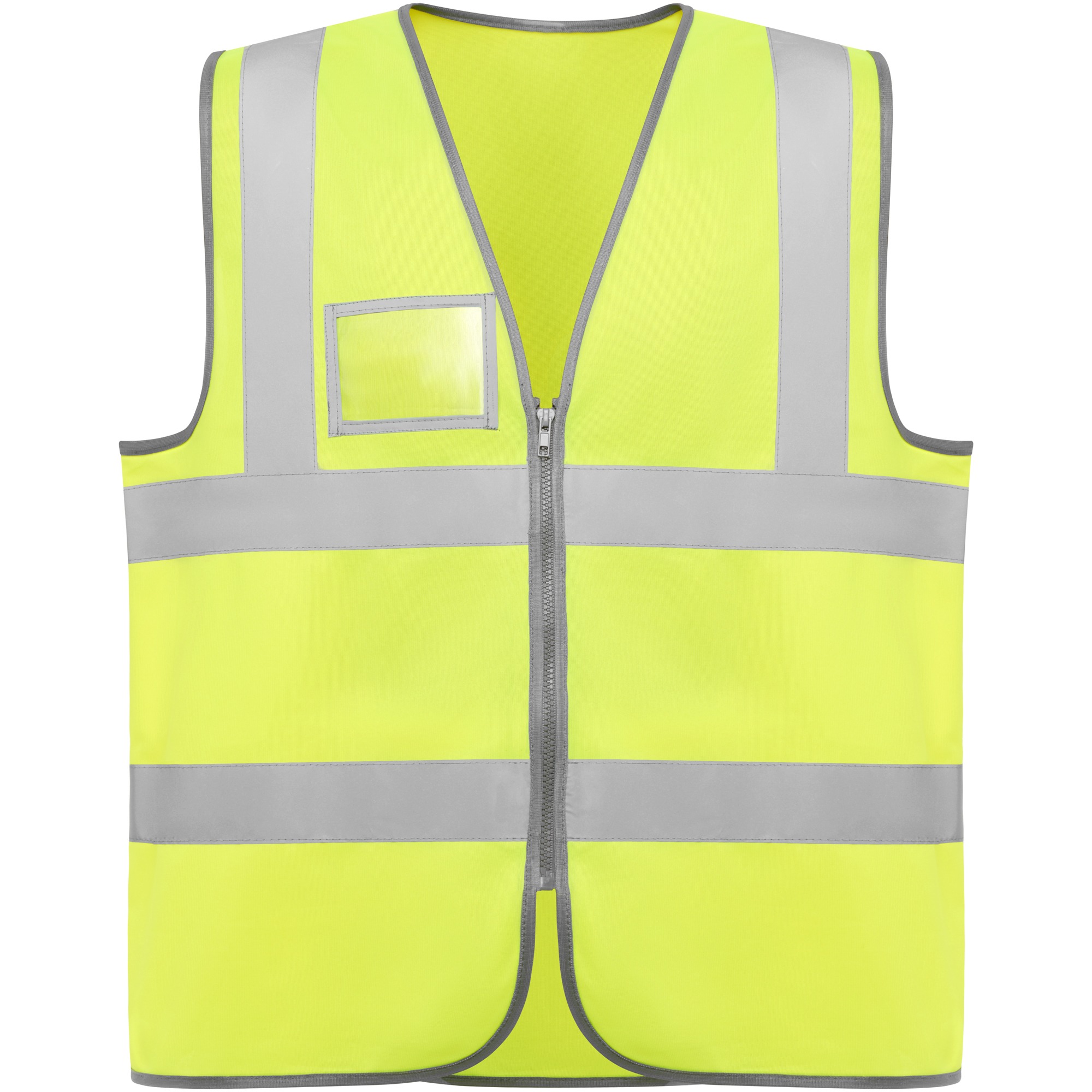 Gilet alta visibilitร con zip centrale.
