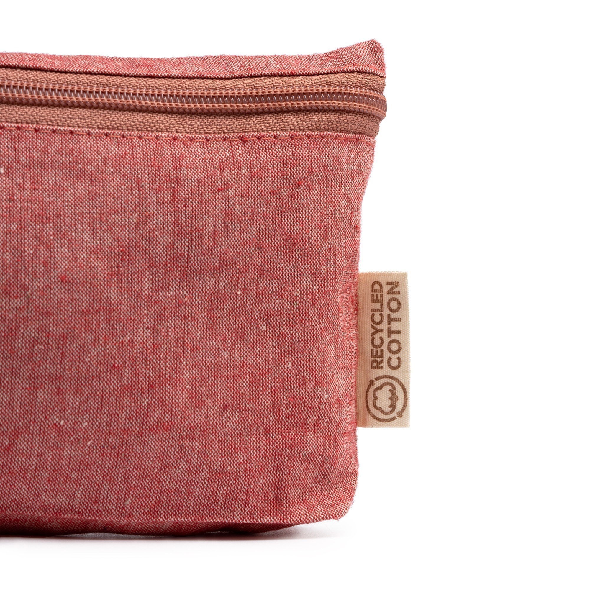 Beauty case multiuso in 100% cotone riciclato con cerniera e tiretto abbinati.