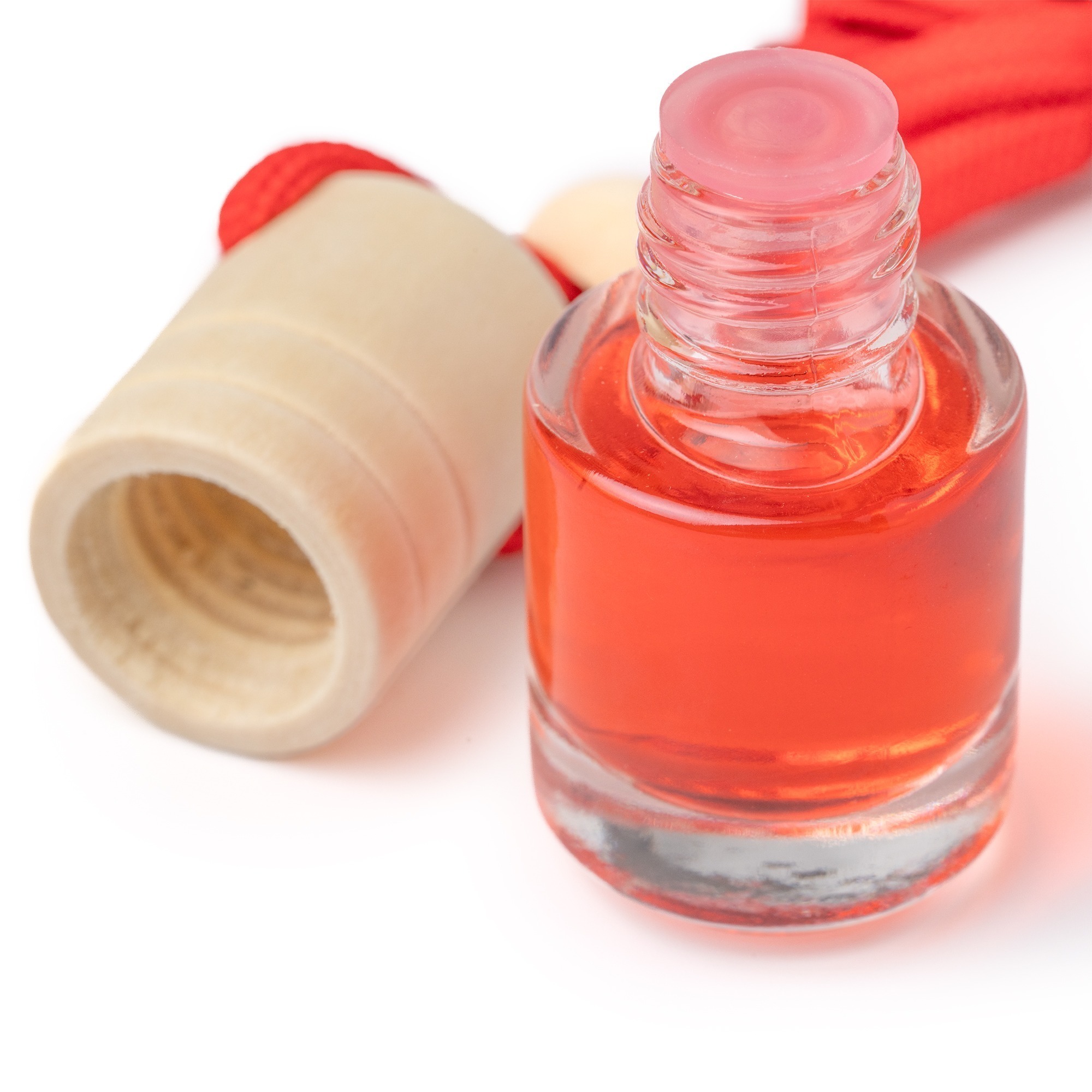 Deodorante per ambienti con diverse profumazioni in un contenitore di vetro con tappo in legno e cordoncino regolabile abbinato. Capacitร 5 ml. Confezione in scatola trasparente.