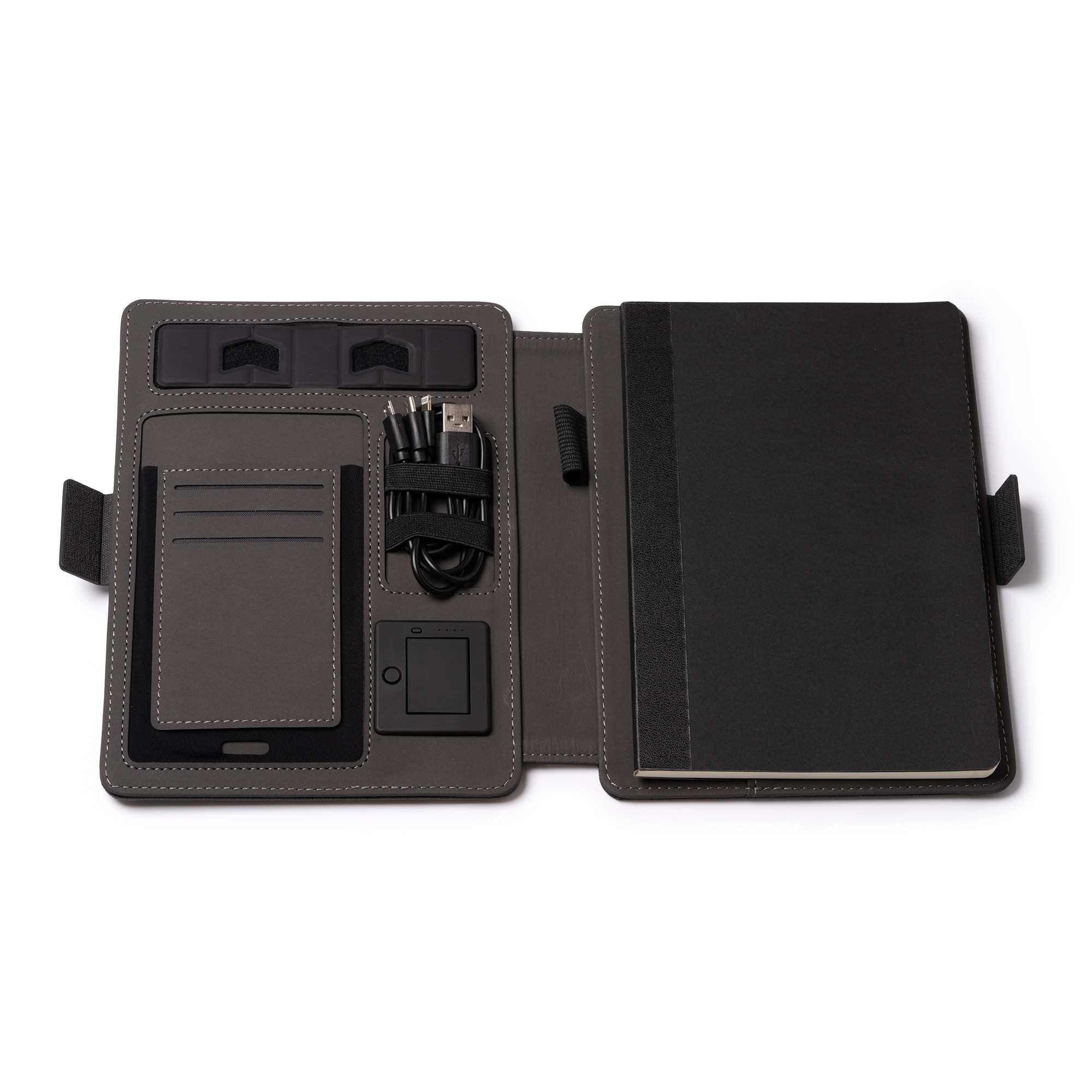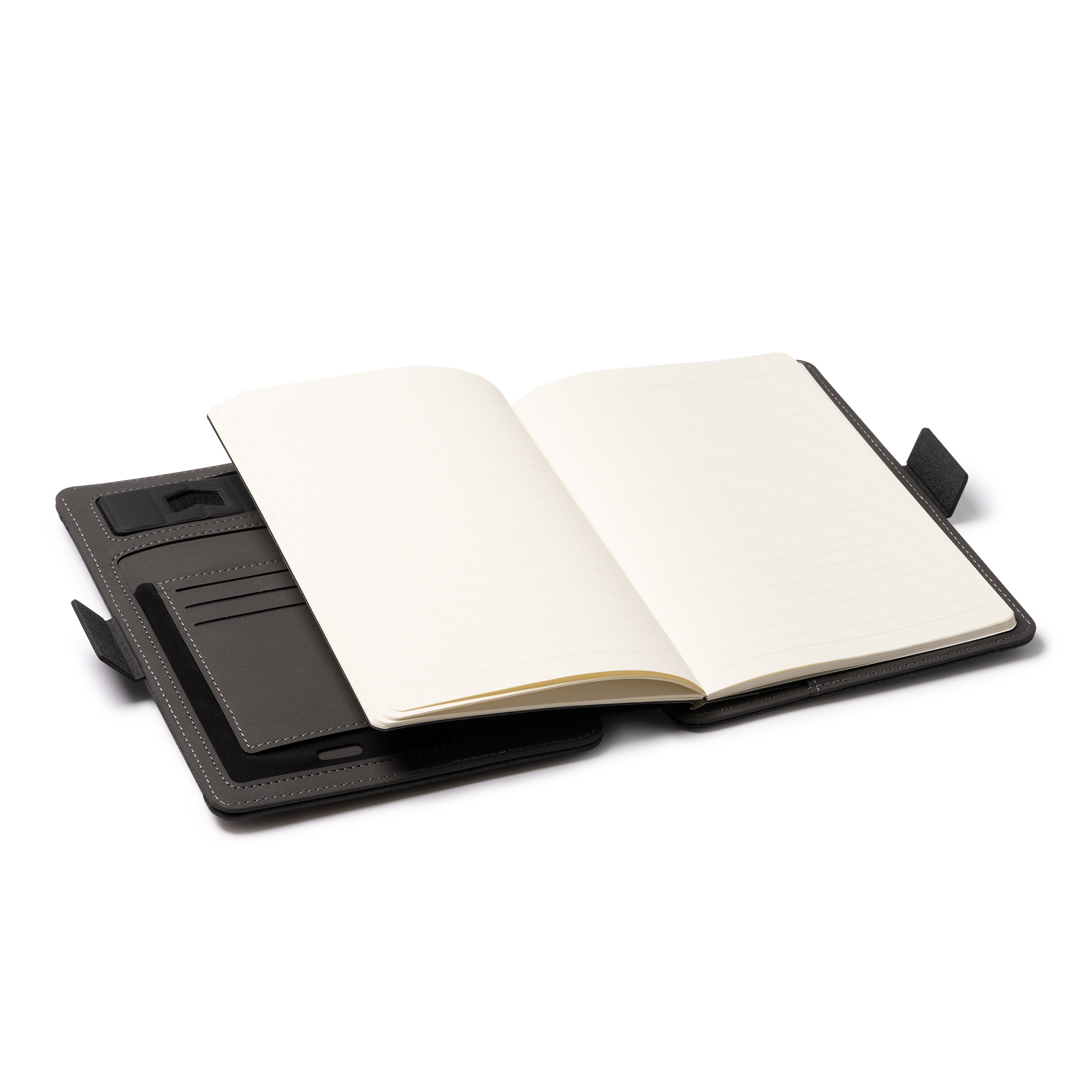 All’interno della cartellina troverete un blocco note rimovibile con 56 fogli e uno scomparto per il vostro cellulare, dove potrete tenerlo a portata di mano e protetto. Include anche un portacarte e un portacellulare.