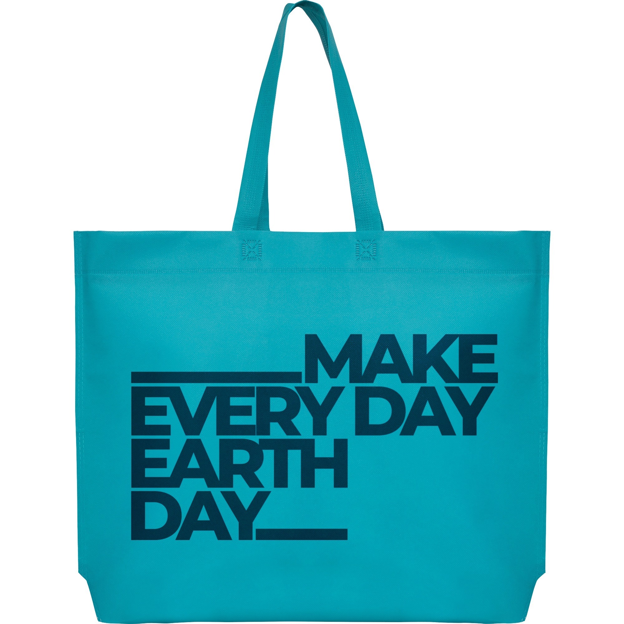 Borsa termosaldata con soffietto esagonale alla base, realizzata in tessuto non woven (TNT), con manici lunghi a nastro dello stesso colore.
