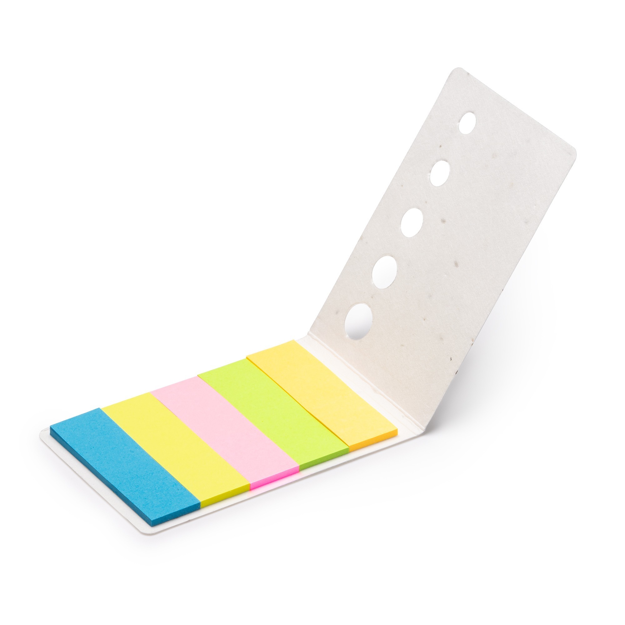 Ricordate che una volta utilizzati tutti i foglietti adesivi, potete sfruttare la carta piantabile e dare vita a nuove piante. In questo modo, promuoverete il riutilizzo dei materiali e il ciclo di vita sostenibile dei prodotti.