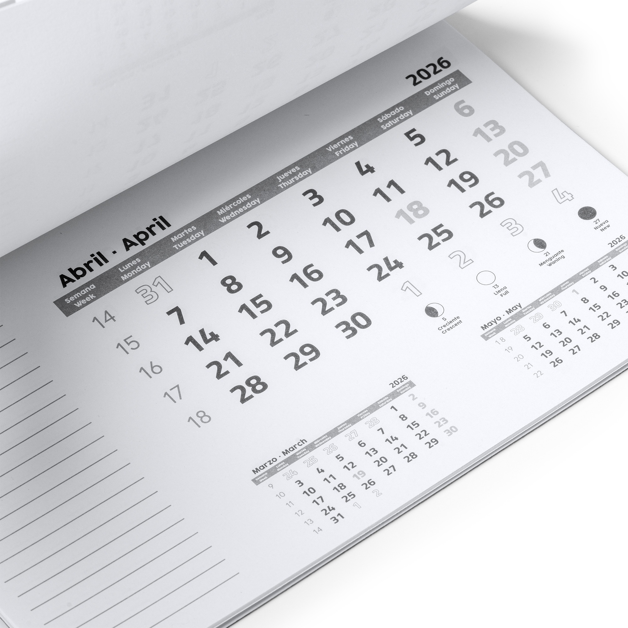 | Composiciรณn | Copertina: PP Base: EVA Calendario: Carta |