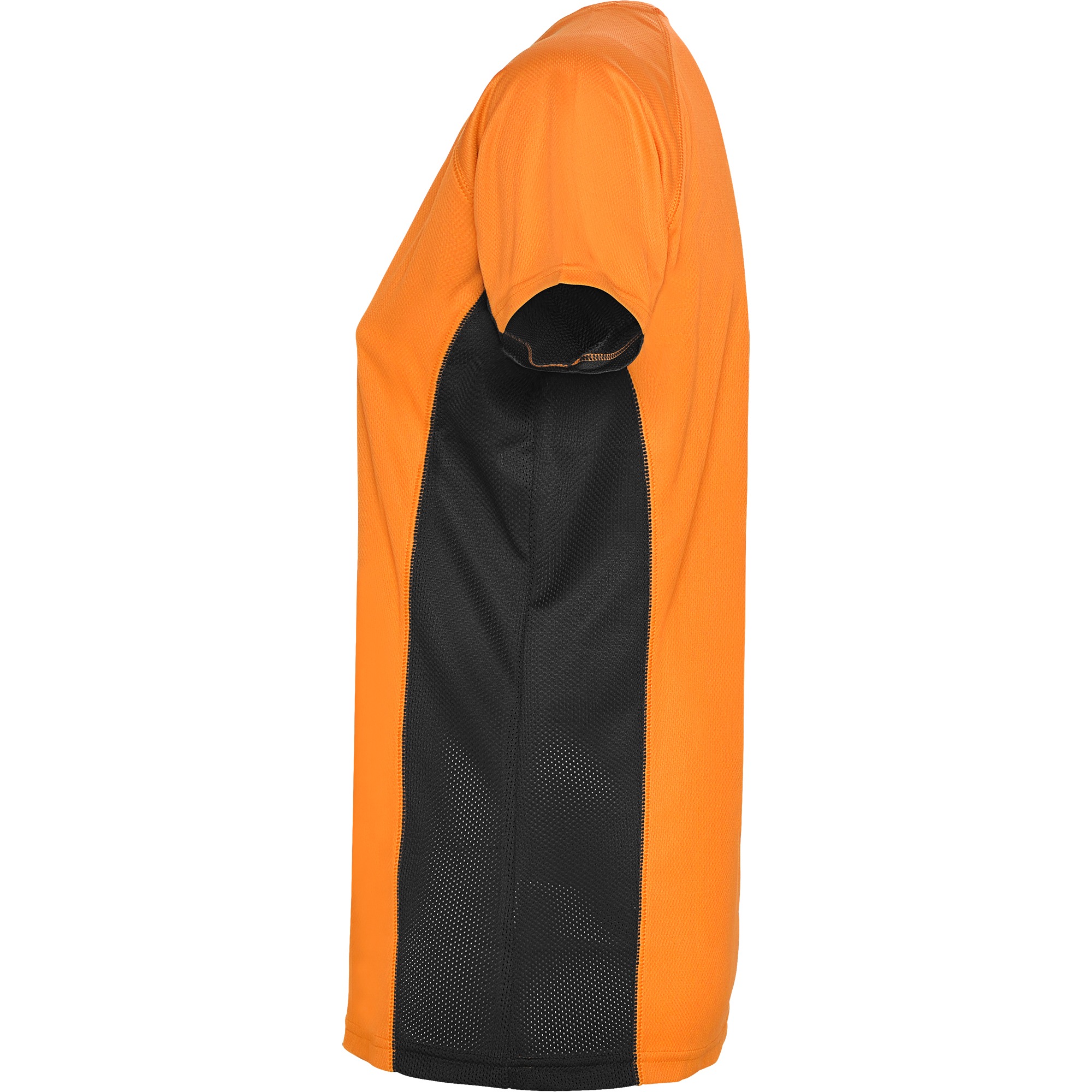 T shirt tecnica con due tessuti in poliestere, maniche corte stile raglan. Tessuto principale occhio di pernice, fasce laterali e interni della manica con tessuto microforato. Girocollo con copri cucitura di rinforzo all’interno. T-shirt in tessuto comodo e facilmente adattabile al corpo.