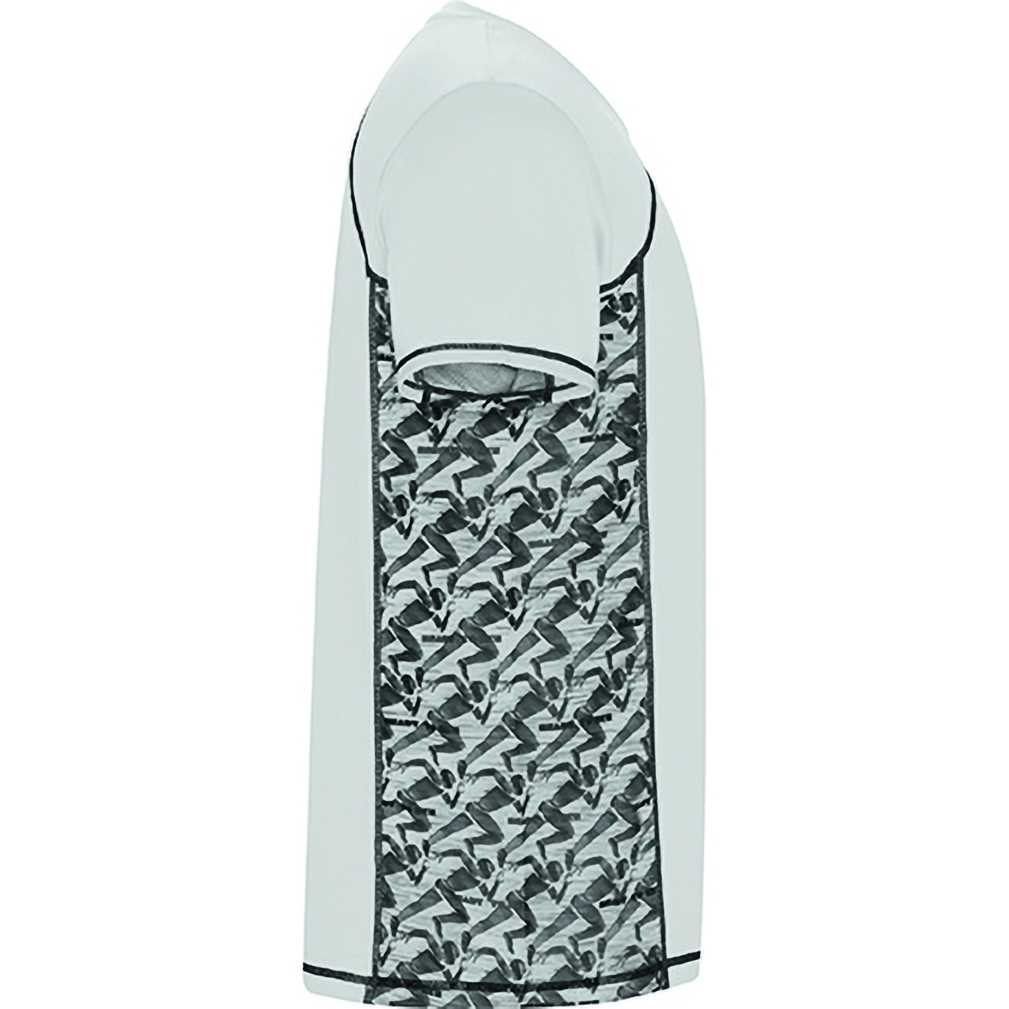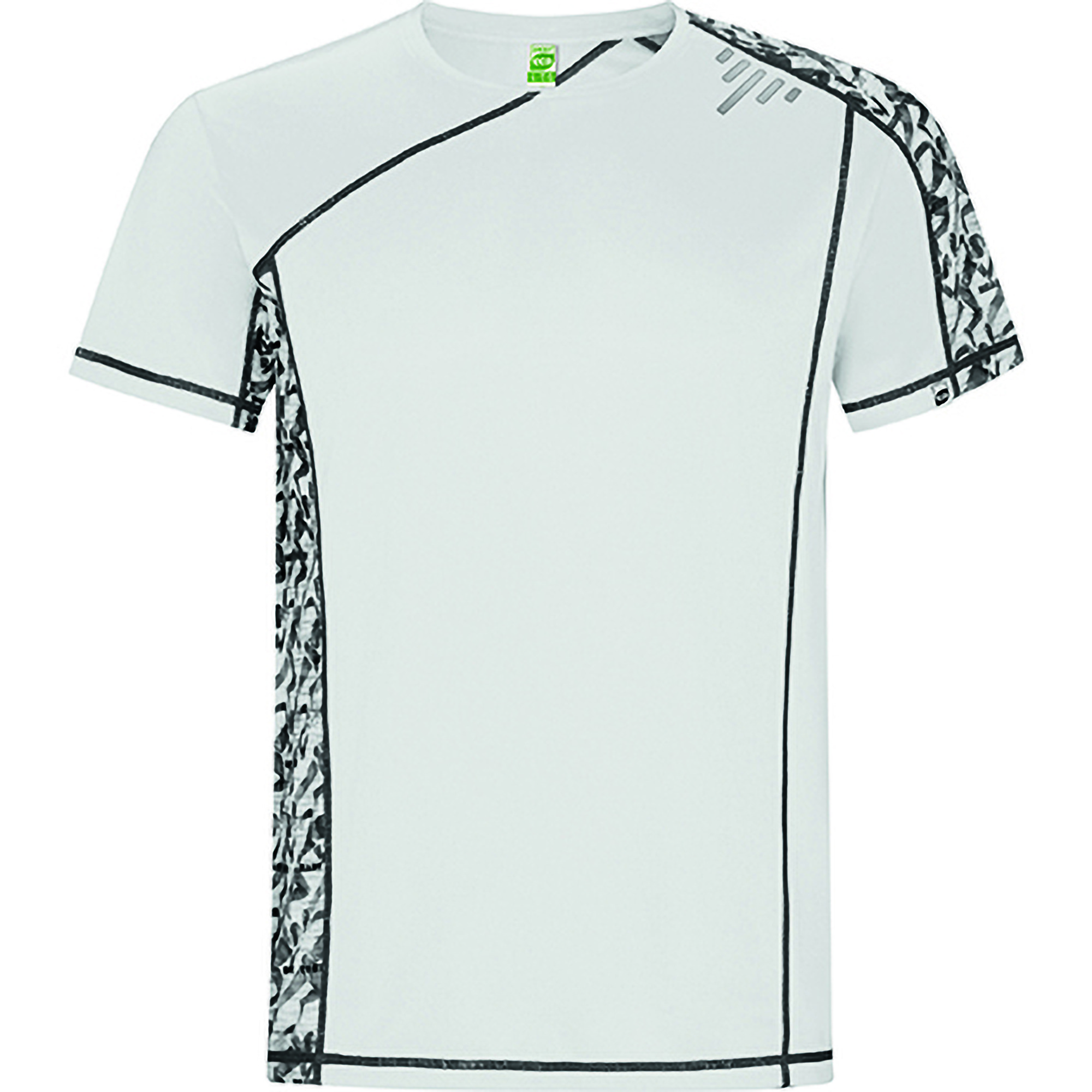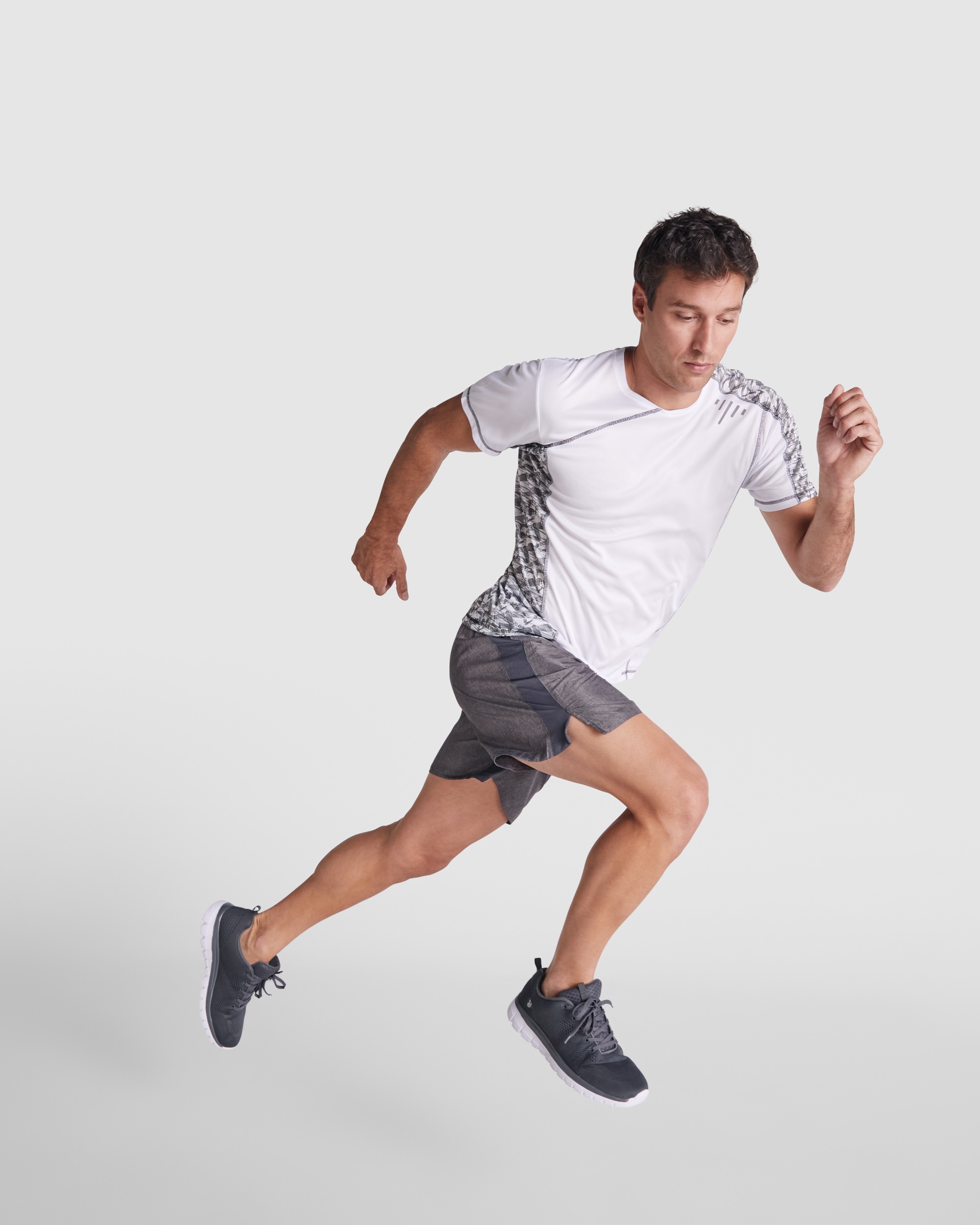 T-shirt tecnica maniche raglan con pannelli stampati. Poliestere riciclato. Cuciture decorative fluo (eccetto colore biacnco). Parte posteriore piรน lunga della parte anteriore. Etichetta identificativa del logo ECO sulla manica.