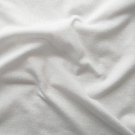 Tessuto in poliestere bianco, con una larghezza di 155 cm. Effetto cotone al tatto morbido e nel drappeggio. Ideale per magliette. Resa di 4,80 mยฒ/kg. Speciale per sublimazione e accetta serigrafia, transfer ed altre lavorazioni.