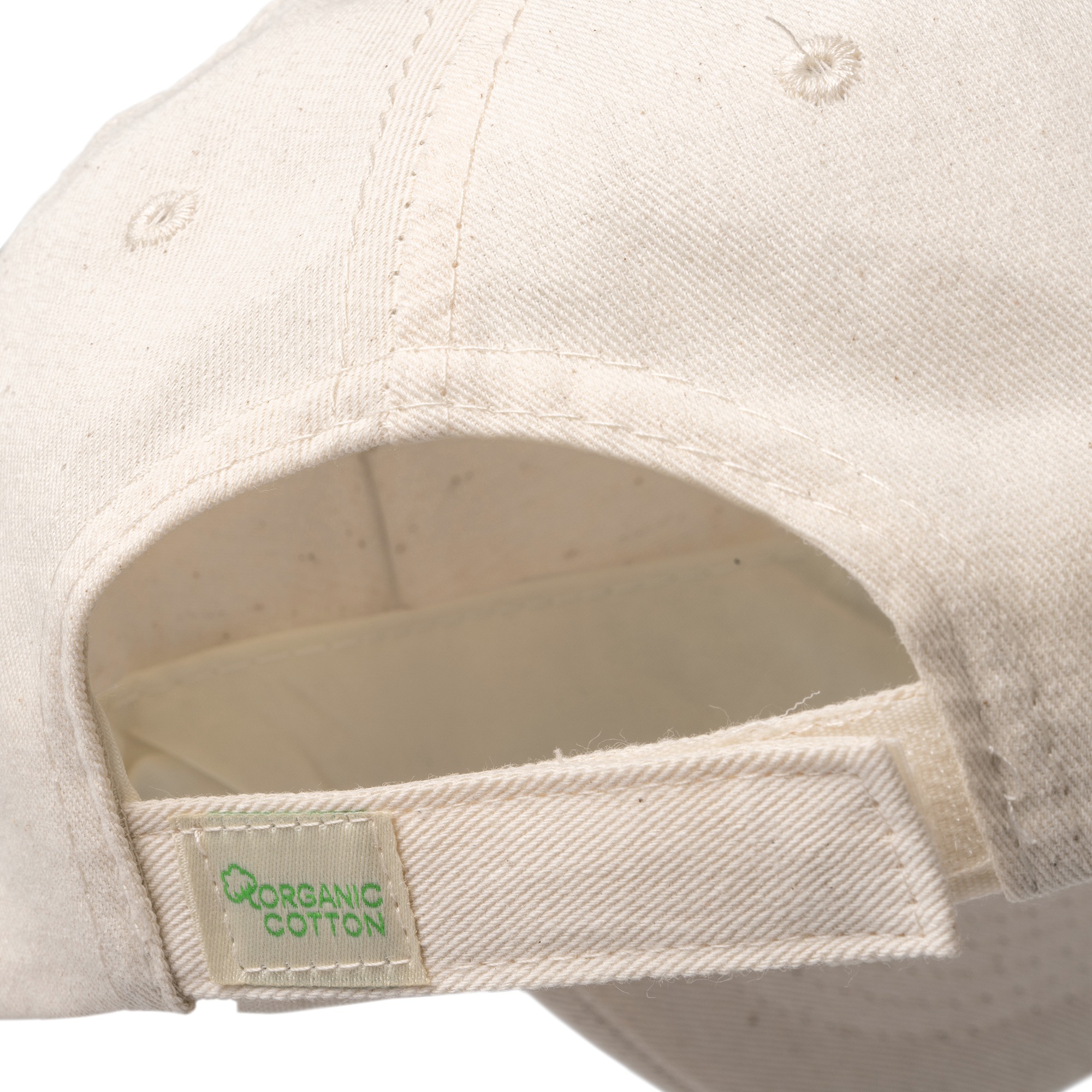 Berretto a 5 sezioni in 100% cotone biologico. Chiusura regolabile in velcro e asole di ventilazione. Etichetta rimovibile.