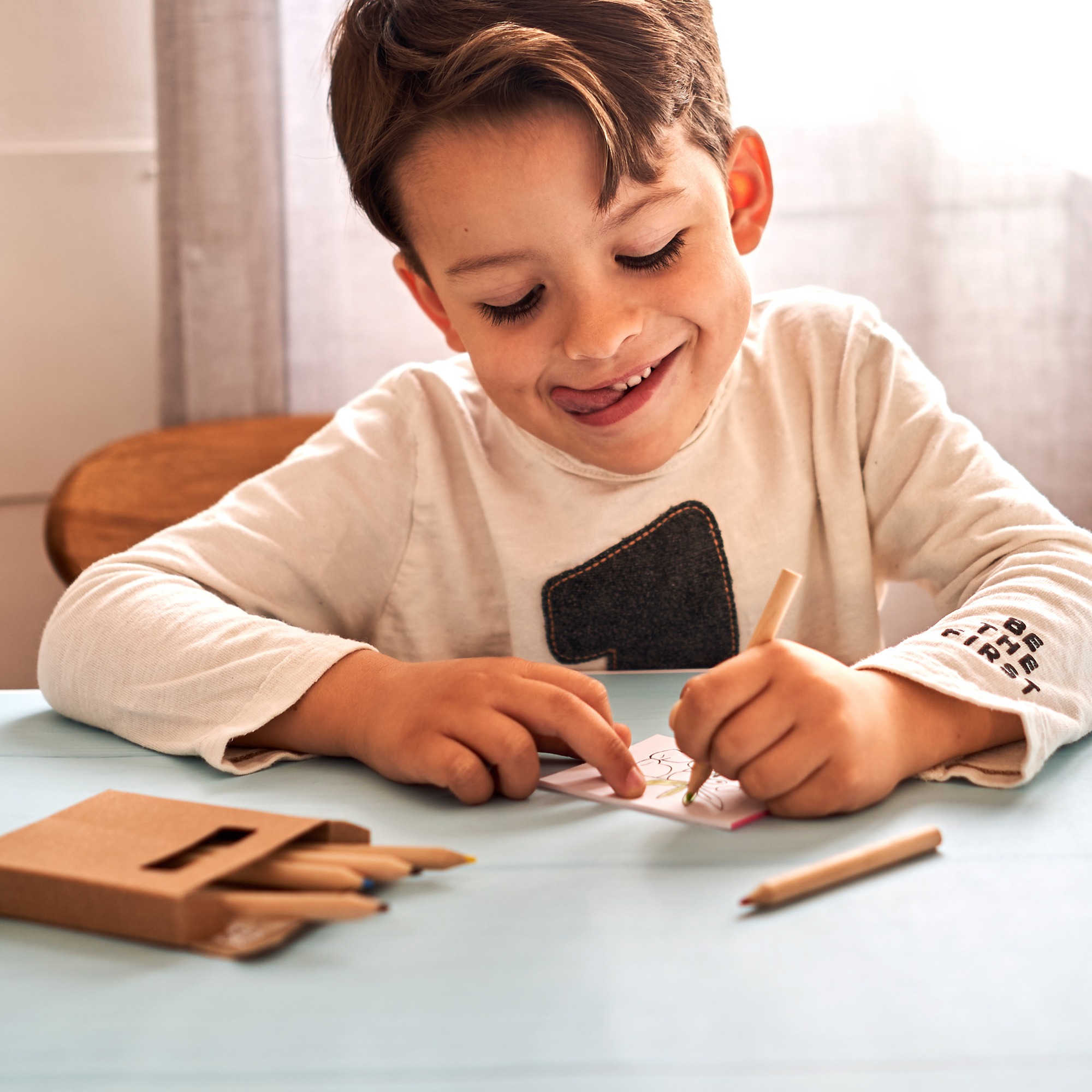 Set per bambini da colorare. Include blocco per disegni, 6 matite colorate e temperamatite.