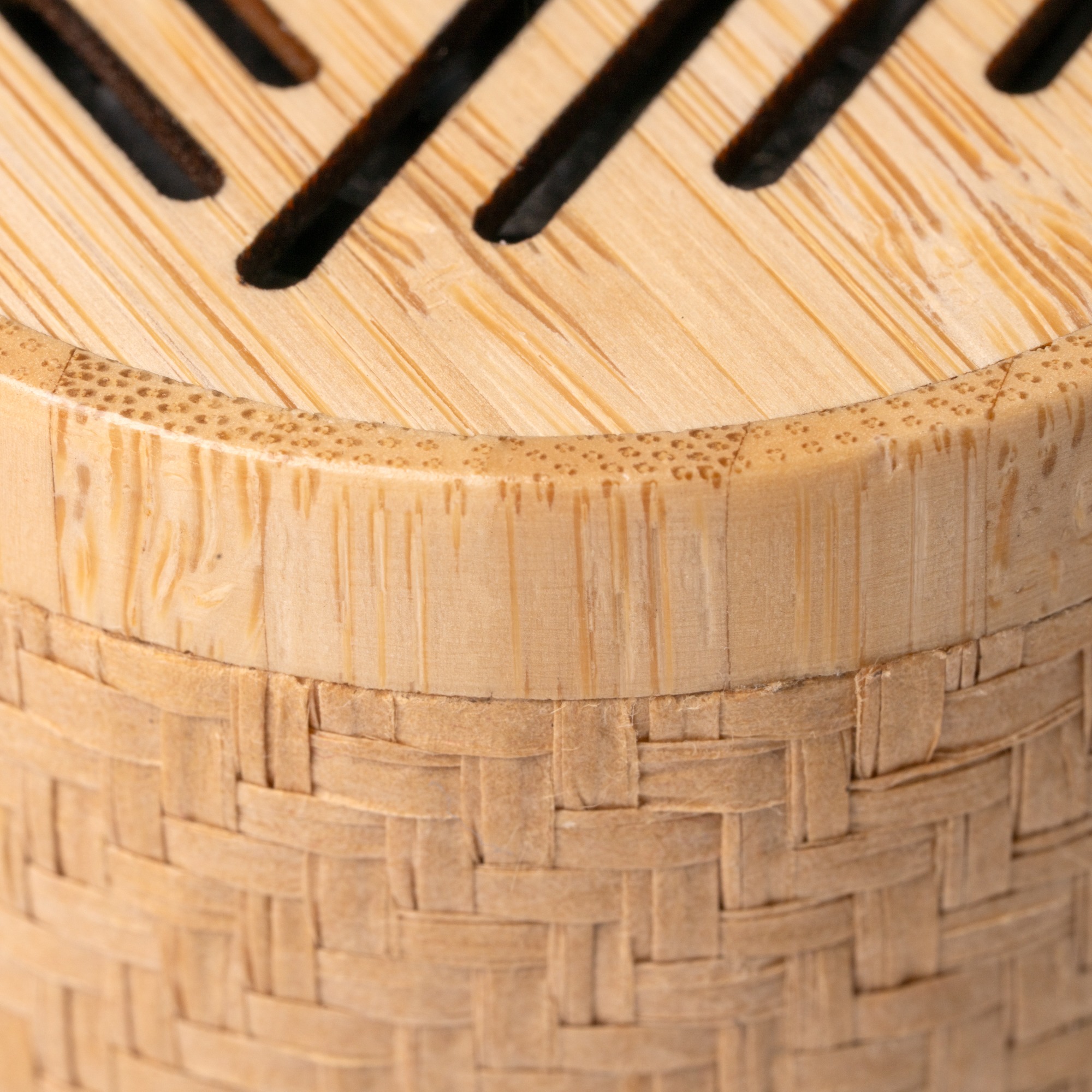 Cassa wireless realizzata con una combinazione di fibre naturali e bambรน. Uscita da 3W. Confezione in scatola di design ecologico.