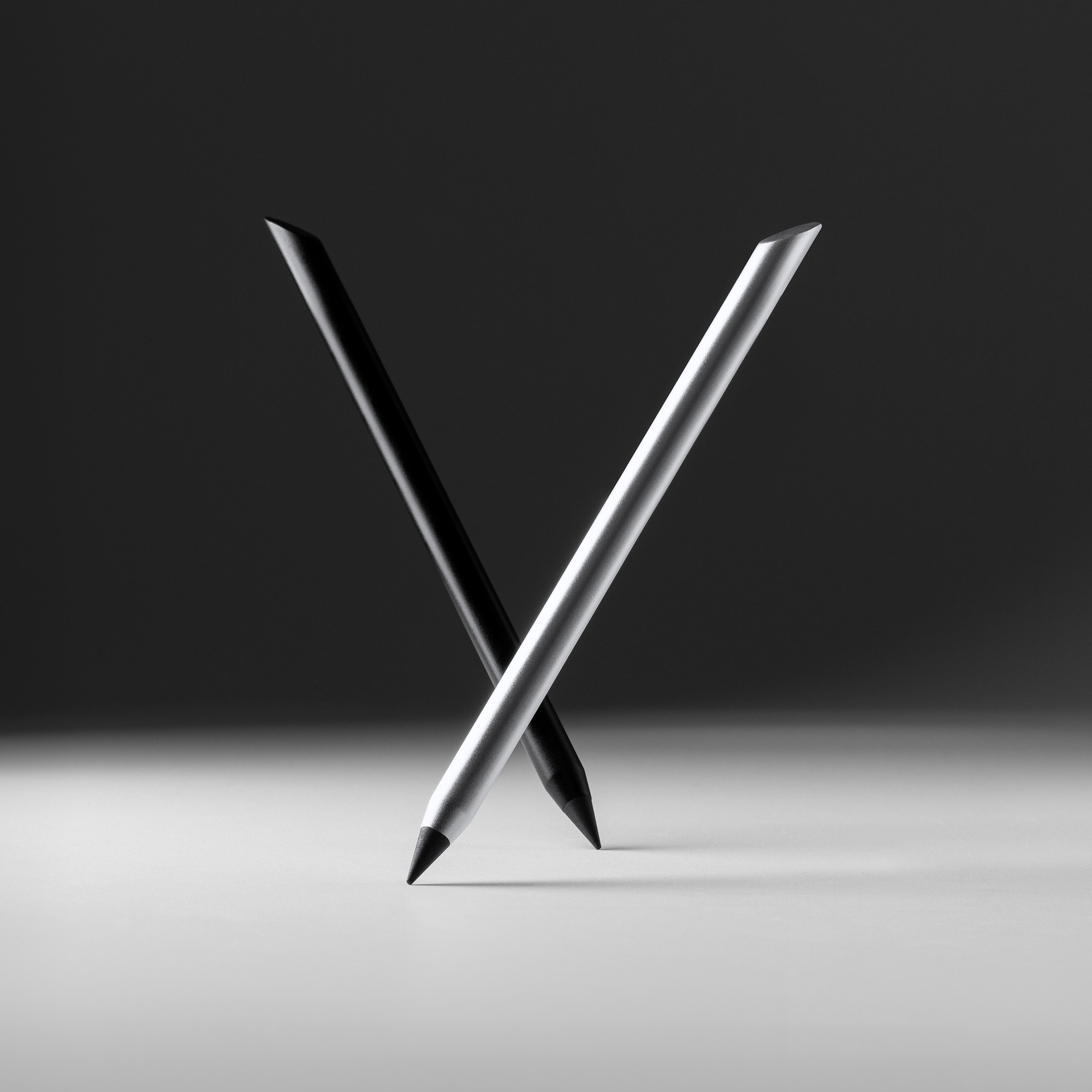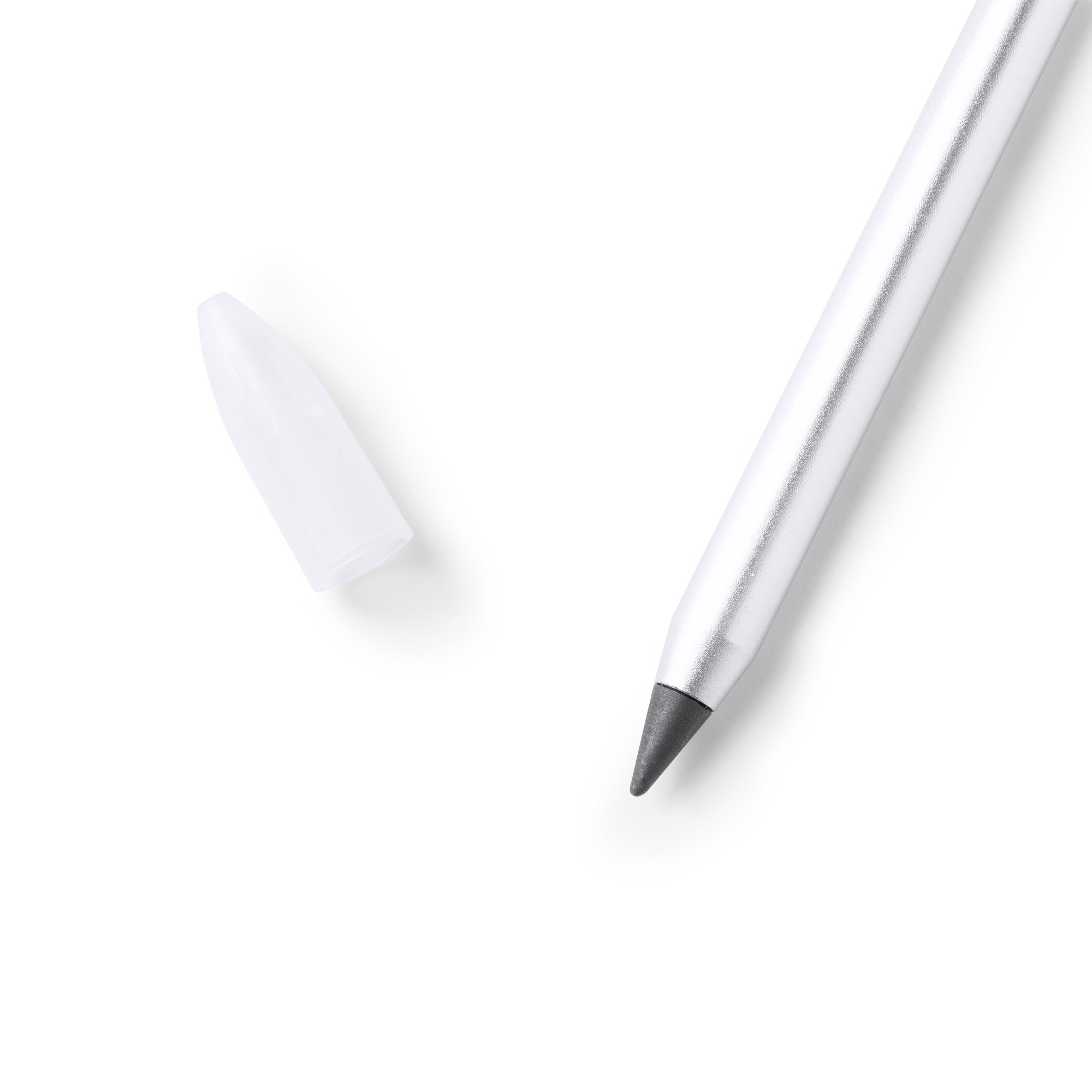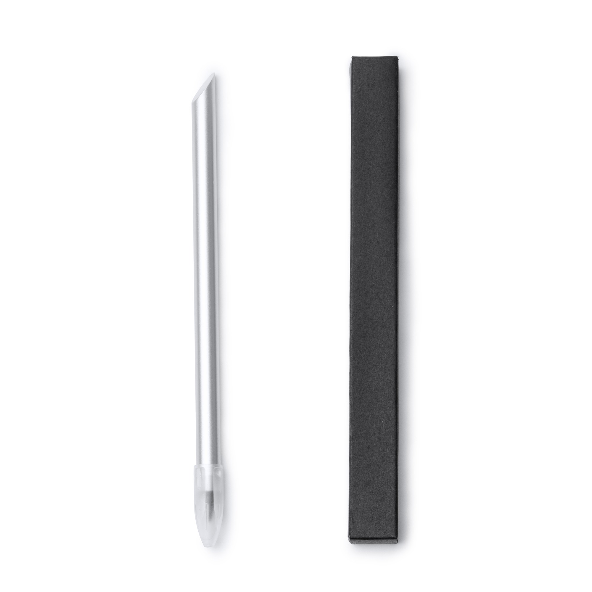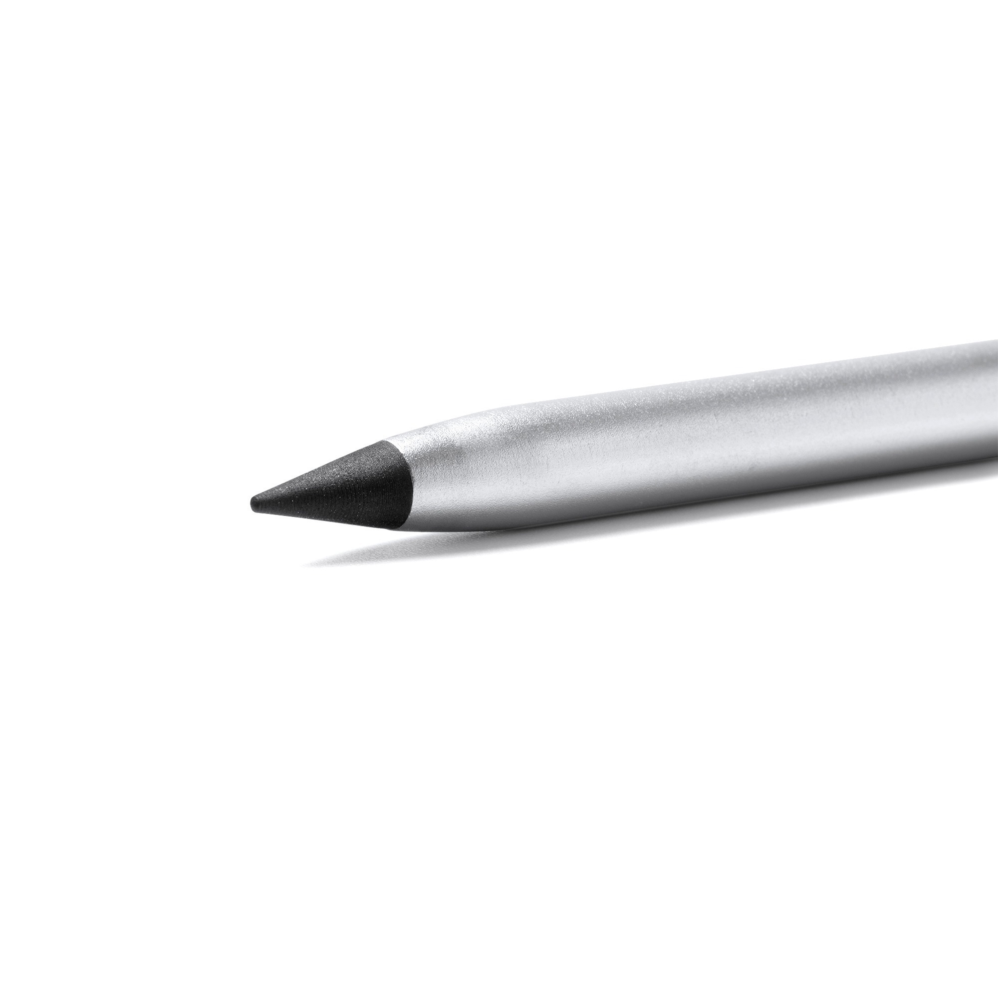 Matita con corpo in alluminio. Guida per una scrittura intercambiabile infinita. Senza bisogno di temperare. Confezione in scatola ecologica.