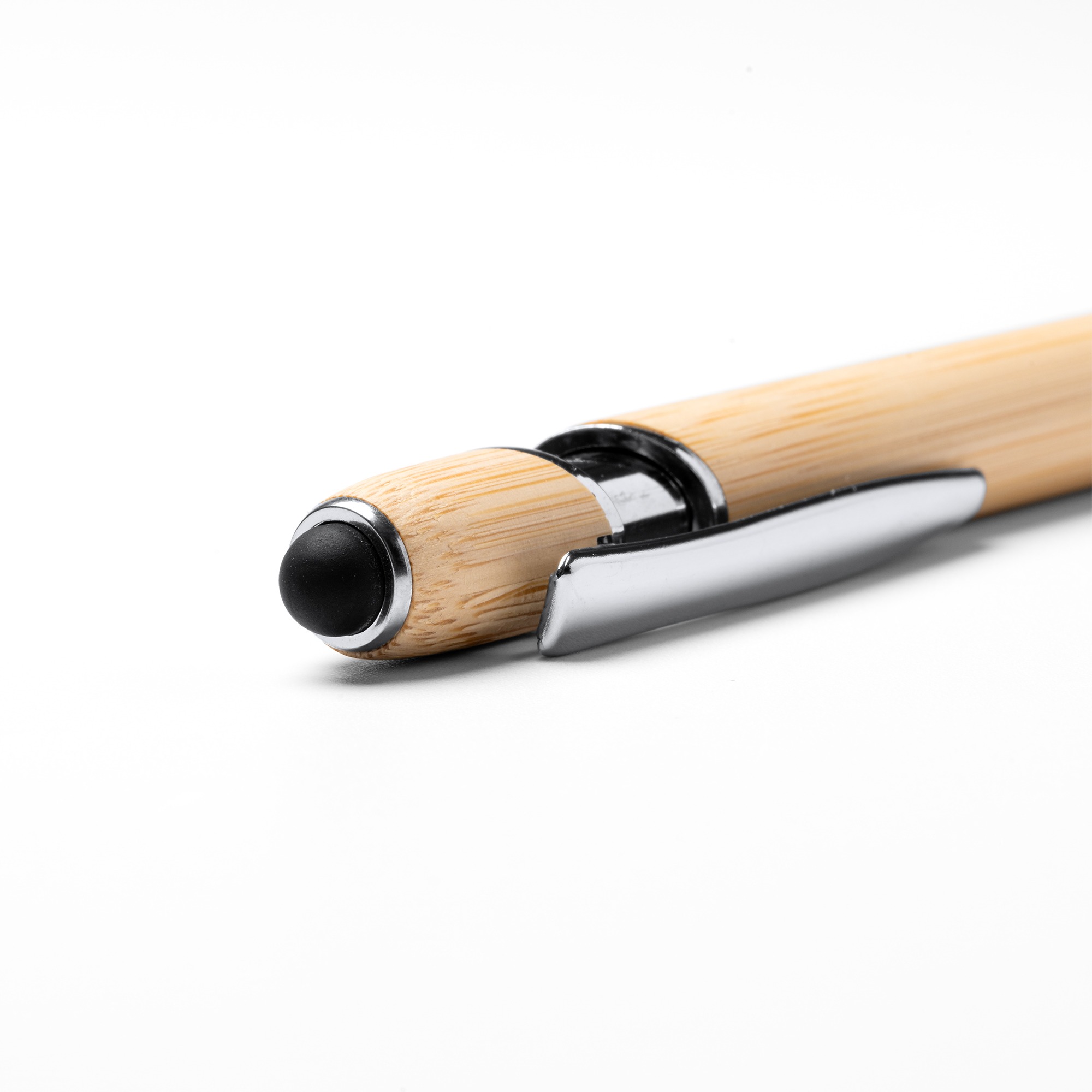Per uso personale o come regalo, questa penna con corpo in bambรน e pulsante in finitura metallica si distingue per stile, funzionalitร e impegno per la sostenibilitร .