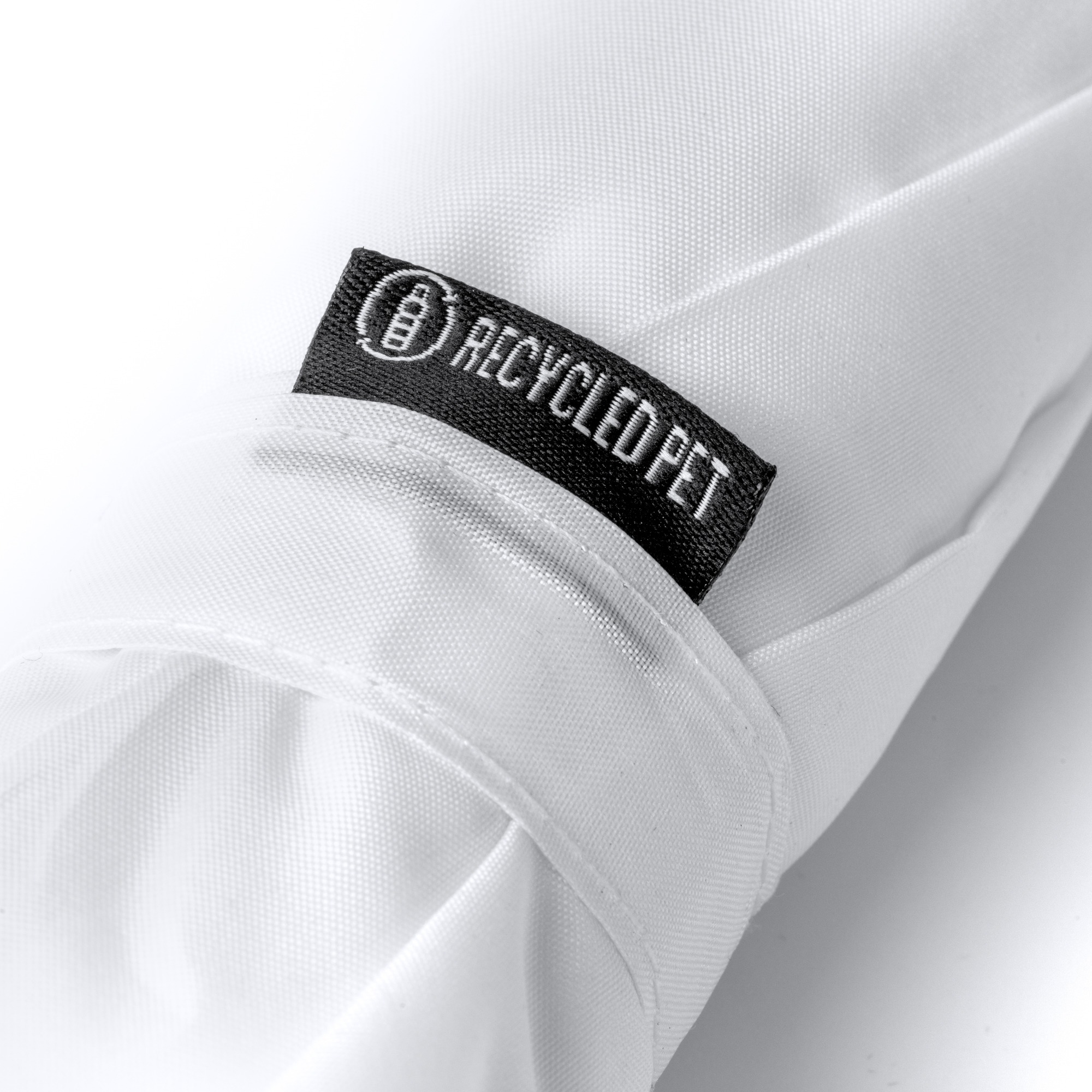 L’ombrello con manico, struttura e dettagli in bambรน offre apertura automatica e tessuto in pongee antivento 190T RPET. Perfetta per proteggersi con stile e sostenibilitร .
