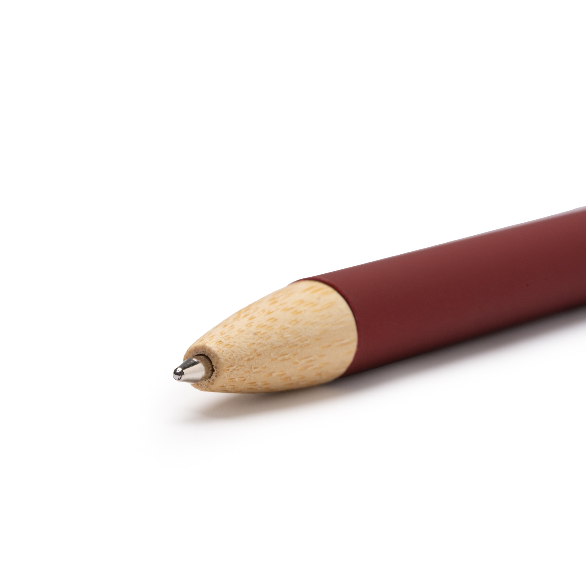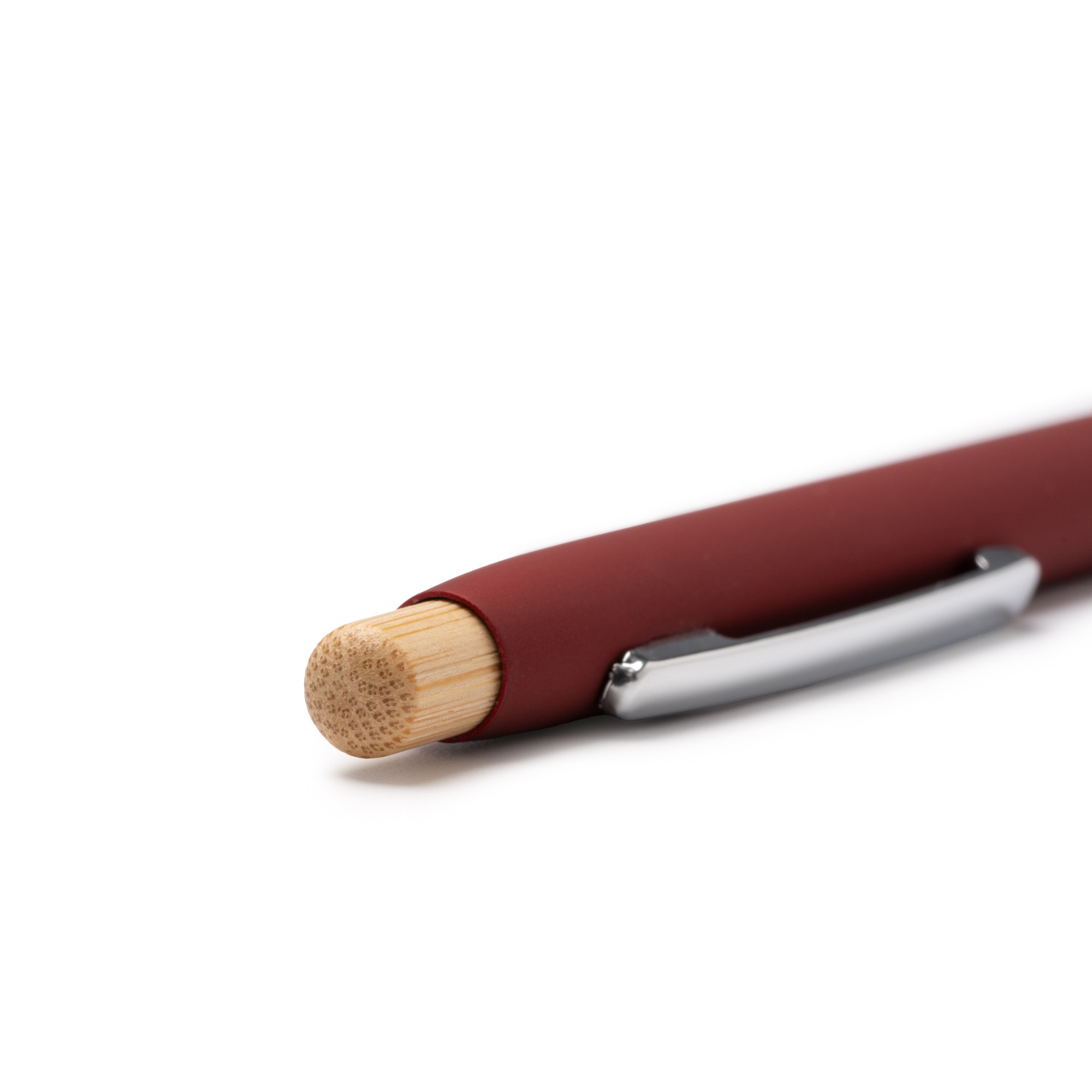 Biro in metallo gommato con finitura a pulsante e dettagli in bambรน, per un design naturale e sostenibile. La clip cromata aggiunge un tocco di eleganza e funzionalitร . Ricarica di inchiostro blu Jumbo.