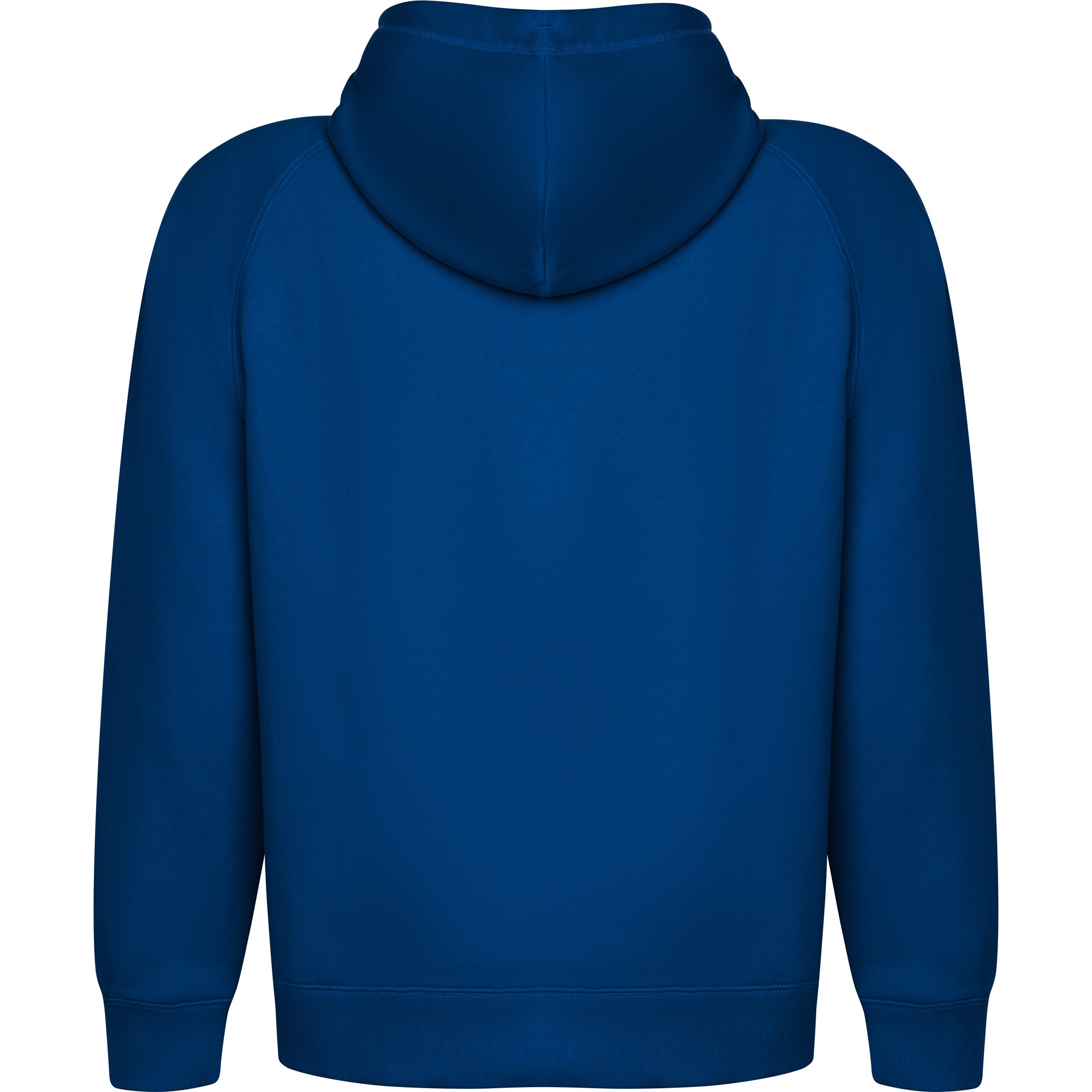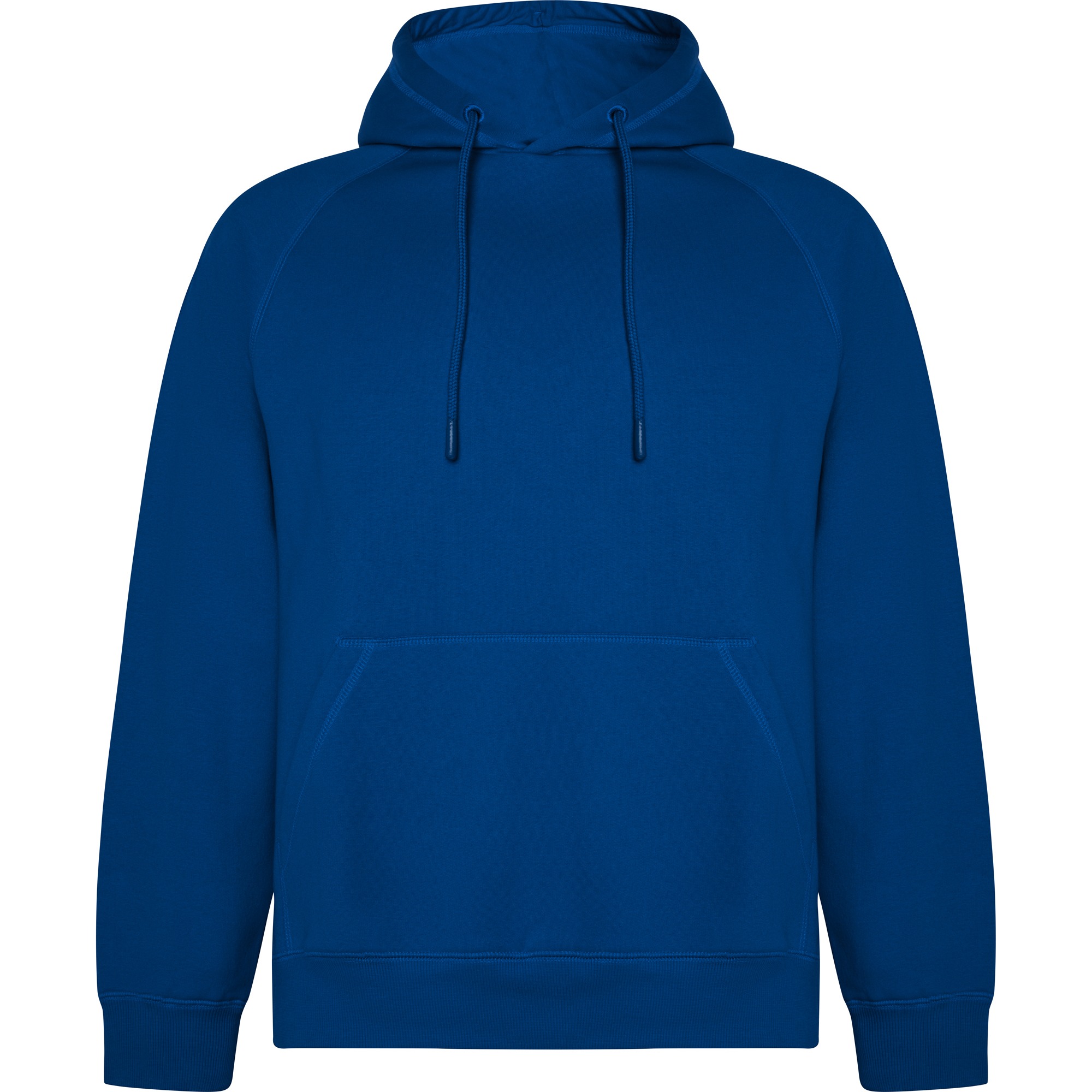 Felpa unisex con cappuccio in cotone organico pettinato e poliestere riciclato. Tasca a canguro. Cappuccio foderato in maglia liscia, coulisse rotonda e occhielli ricamati. Polsini e cintura a coste 2×1