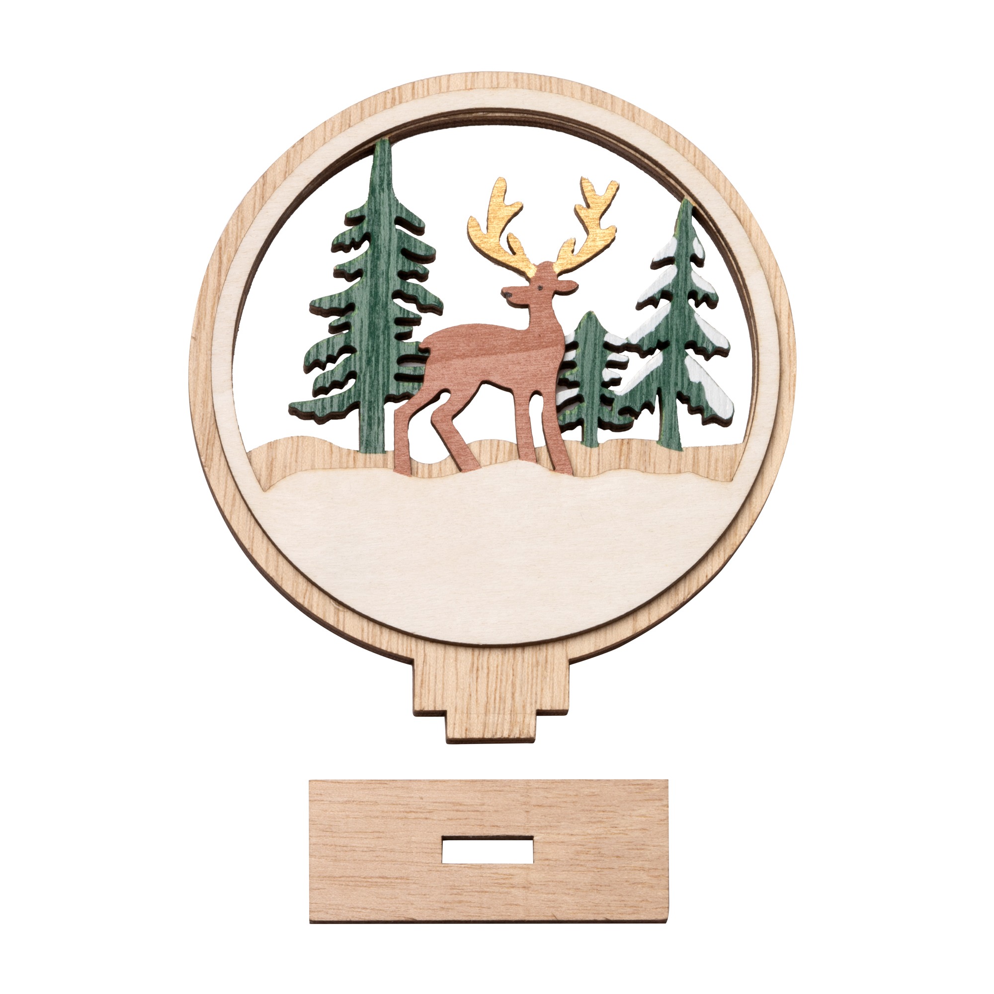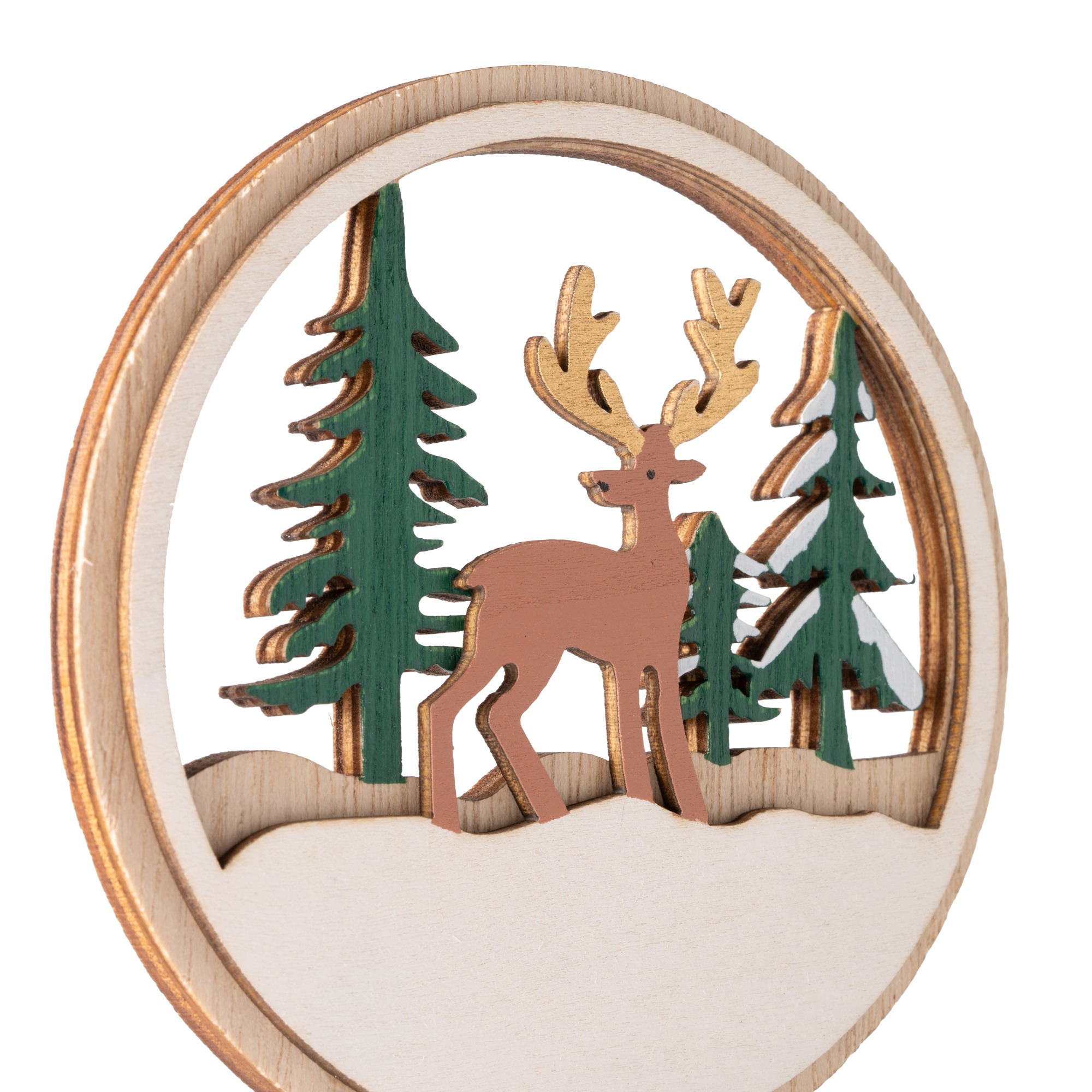 Ornamento natalizio in legno con base staccabile, ideale per decorare con fascino le feste.